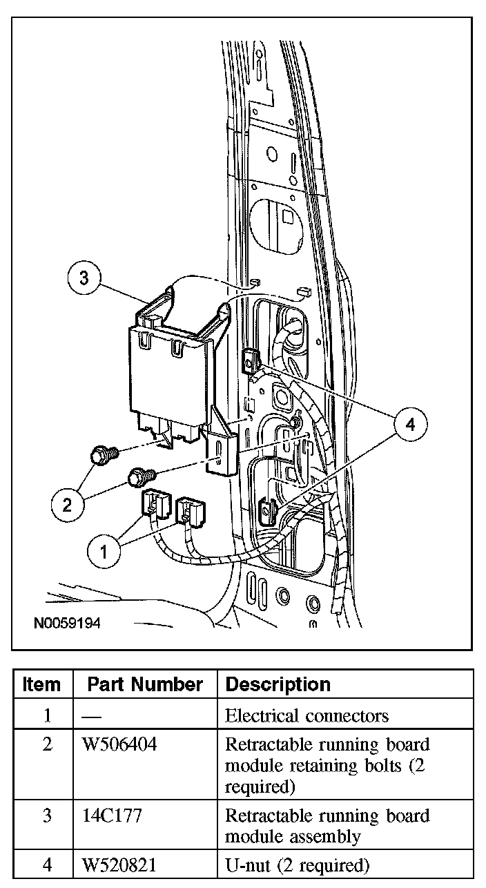 3. Remove the 2 bolts and the retractable running board module assembly.