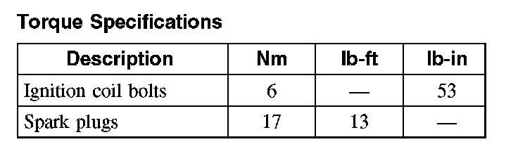 Torque Specifications: