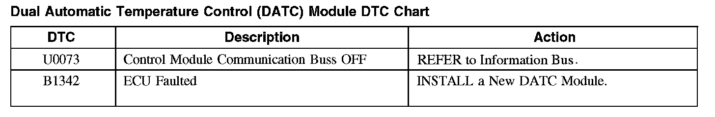 Dual Automatic Temperature Control (DATC) Module DTC Chart