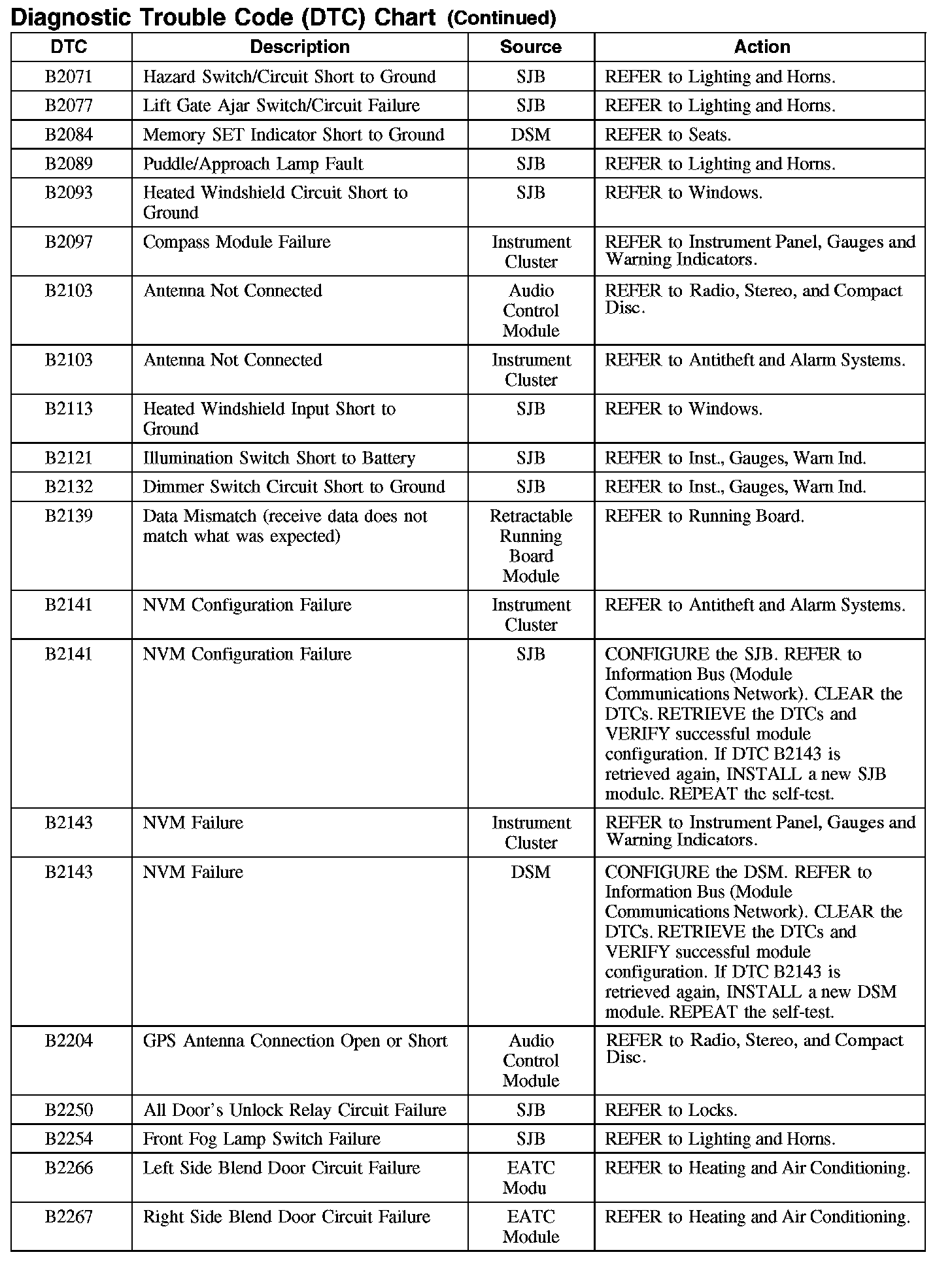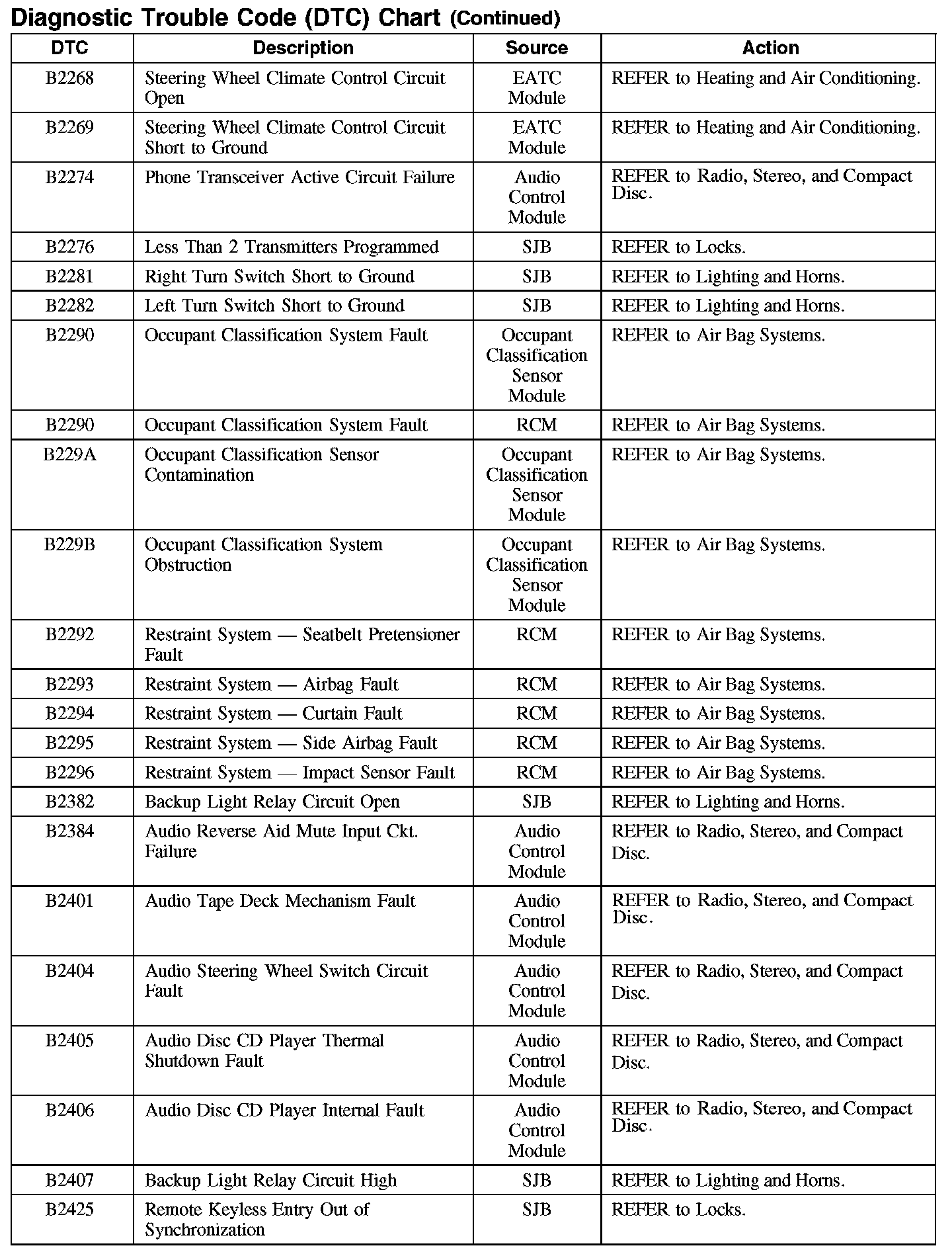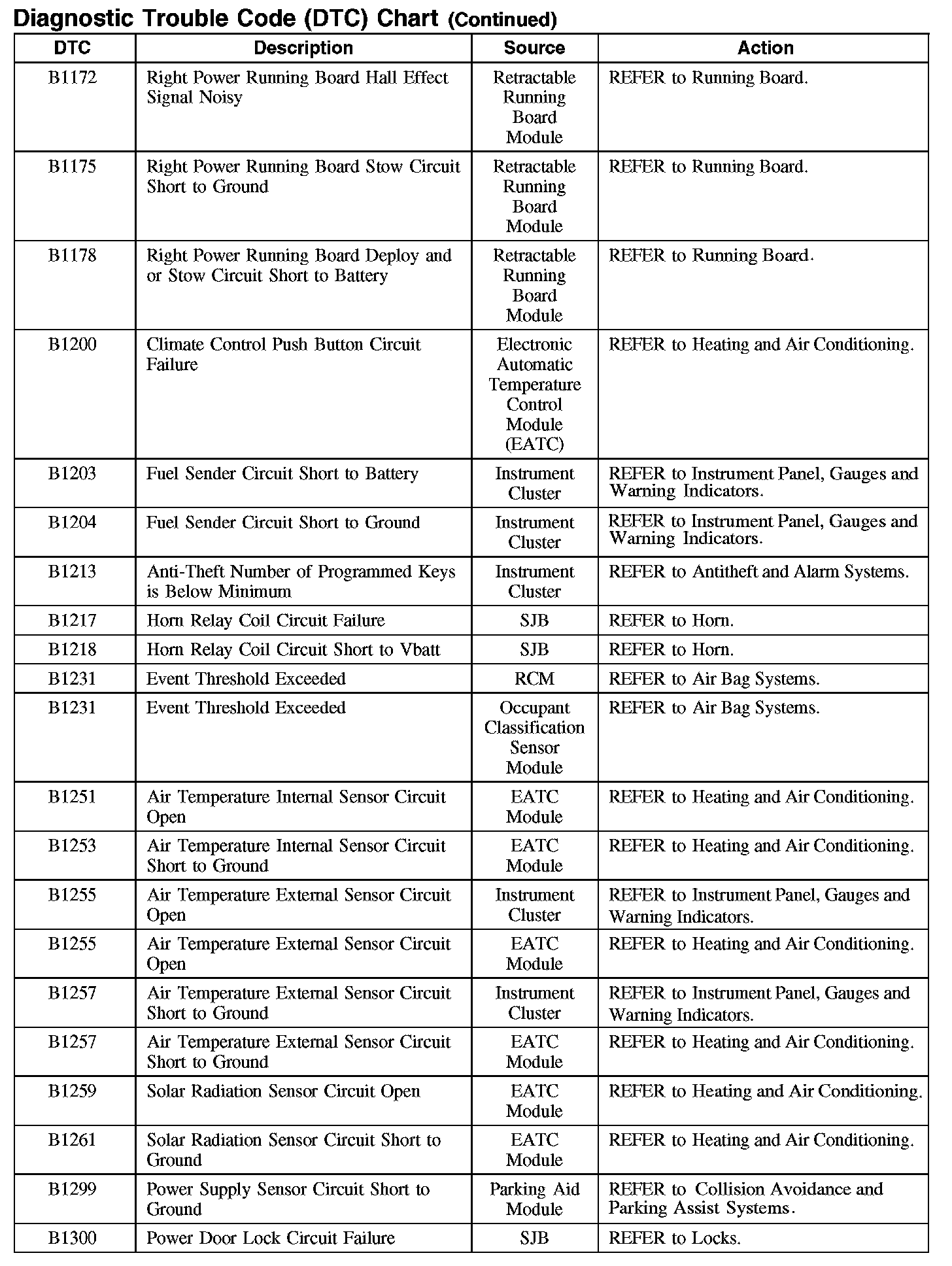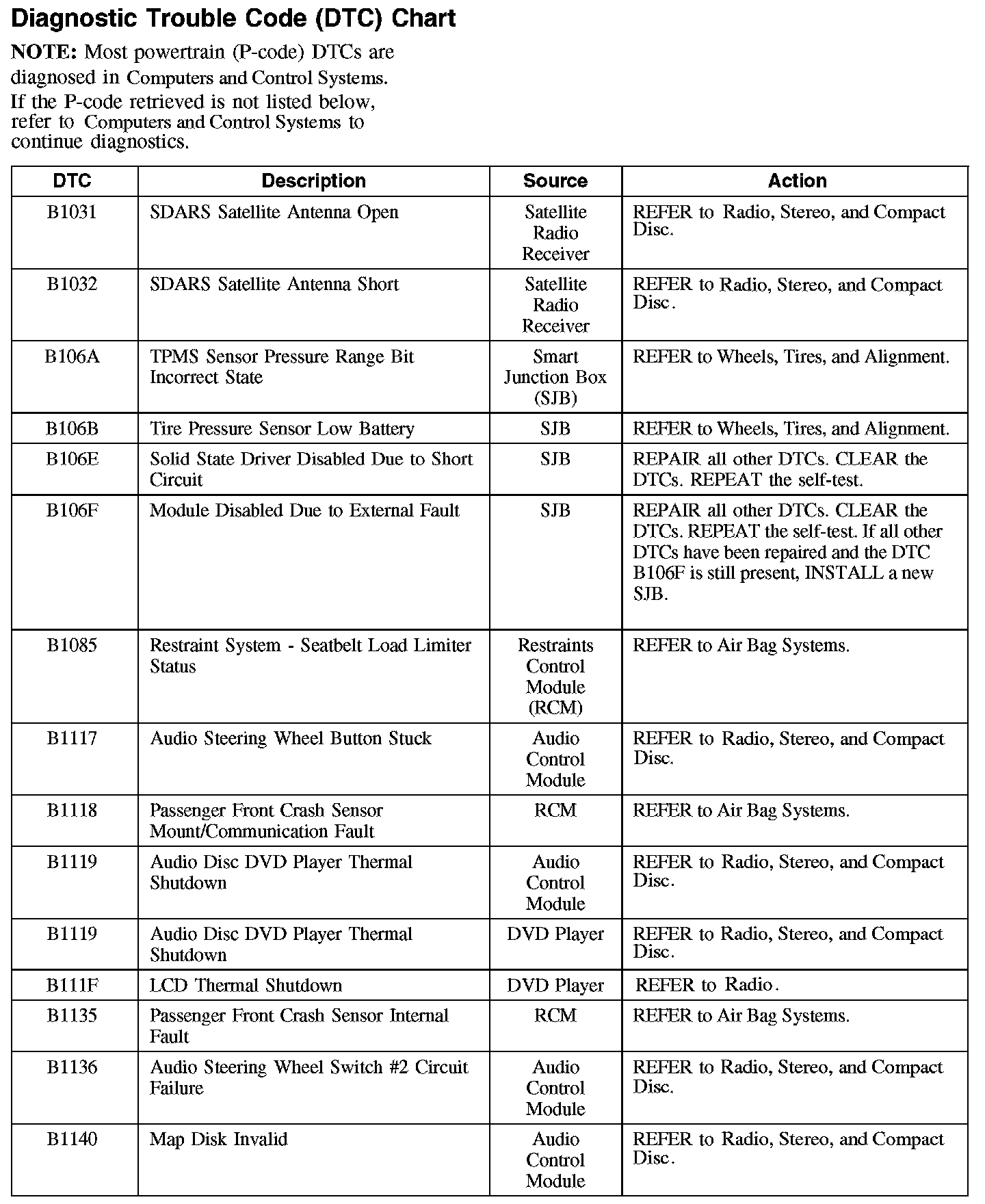 DIAGNOSTIC TROUBLE CODE (DTC) CHARTB1031-B1140: