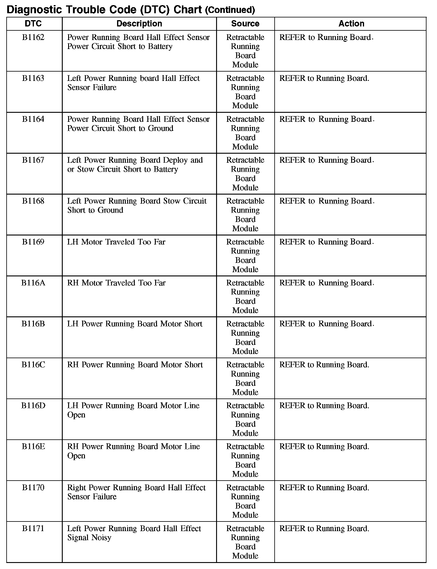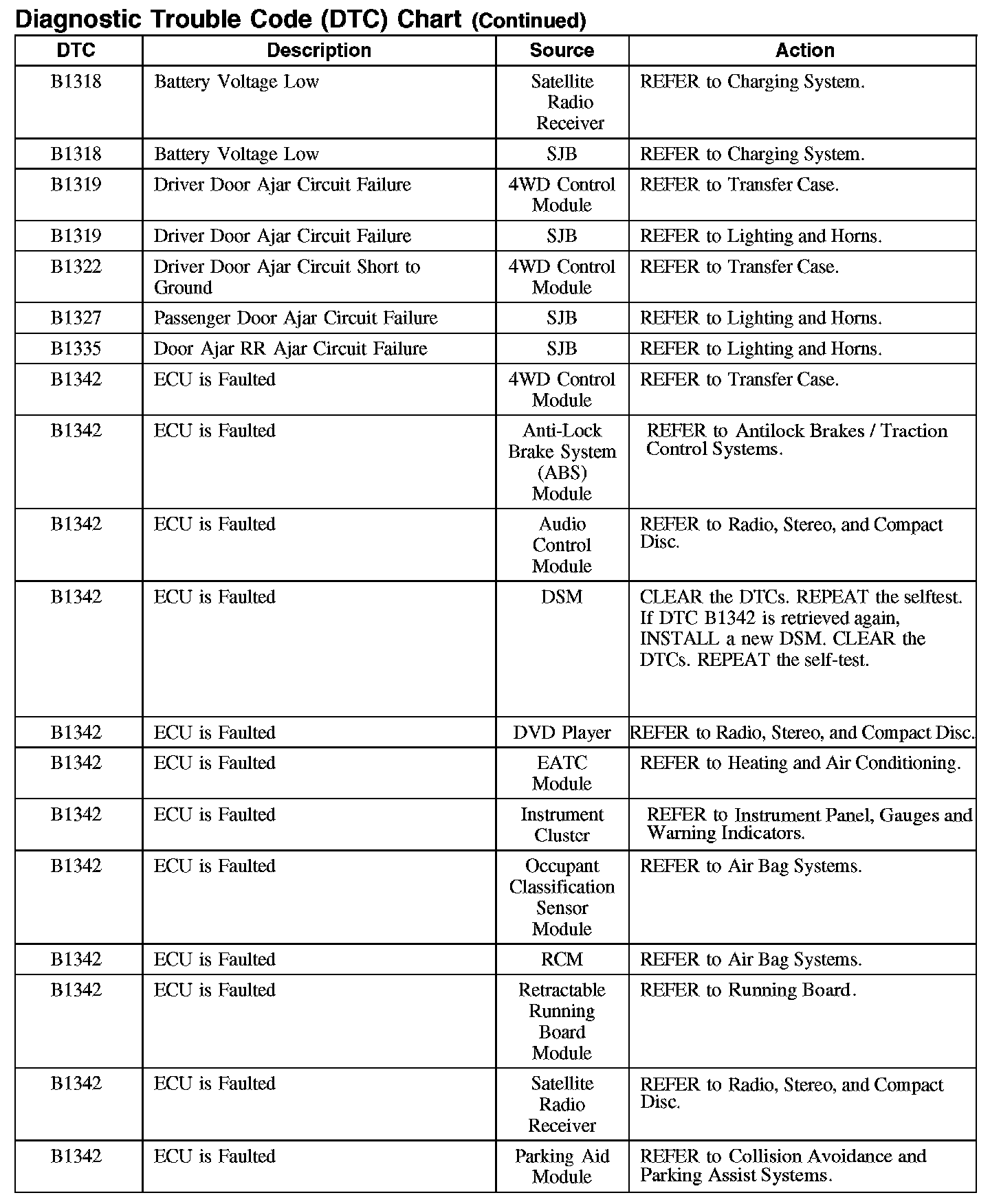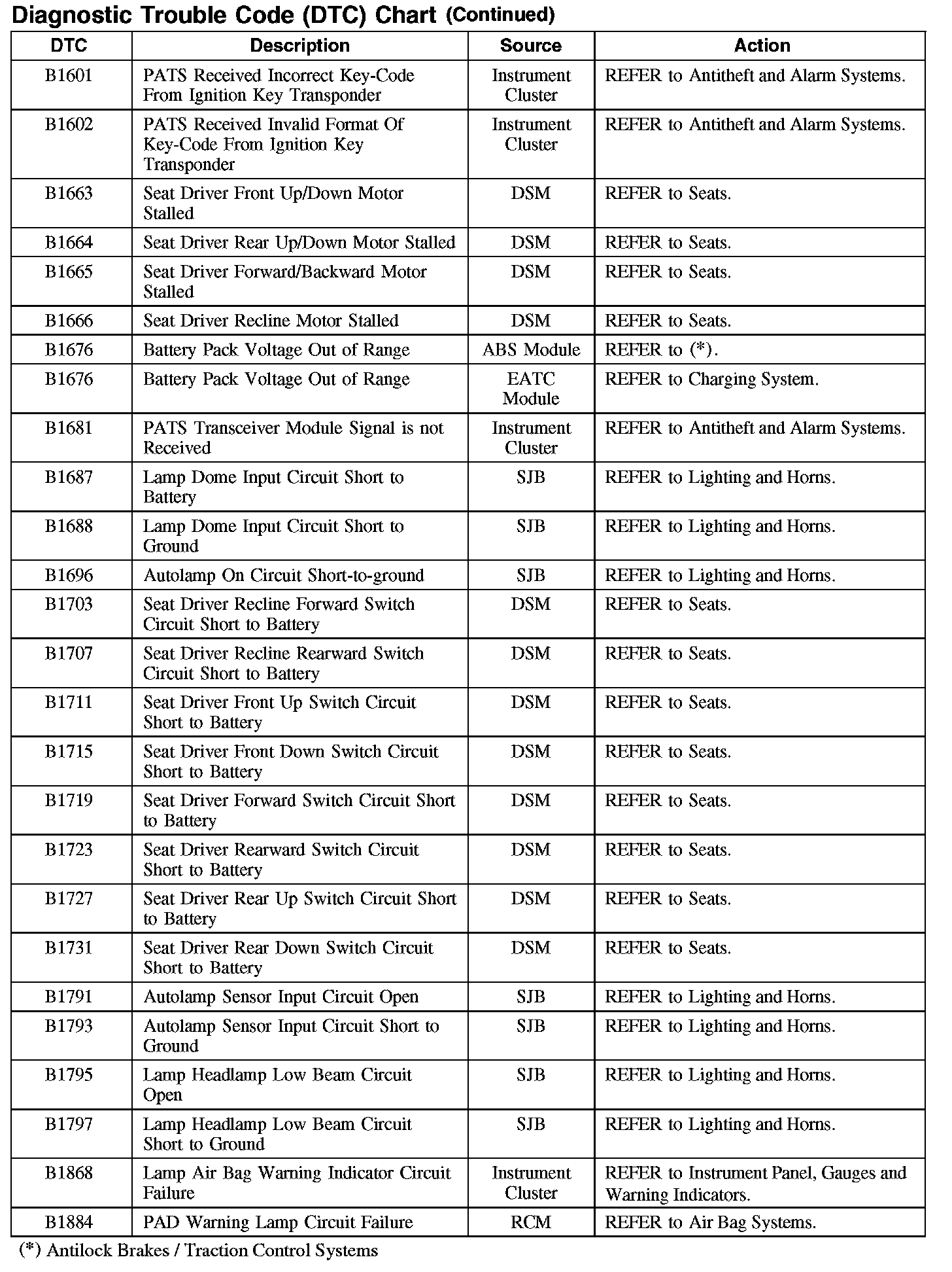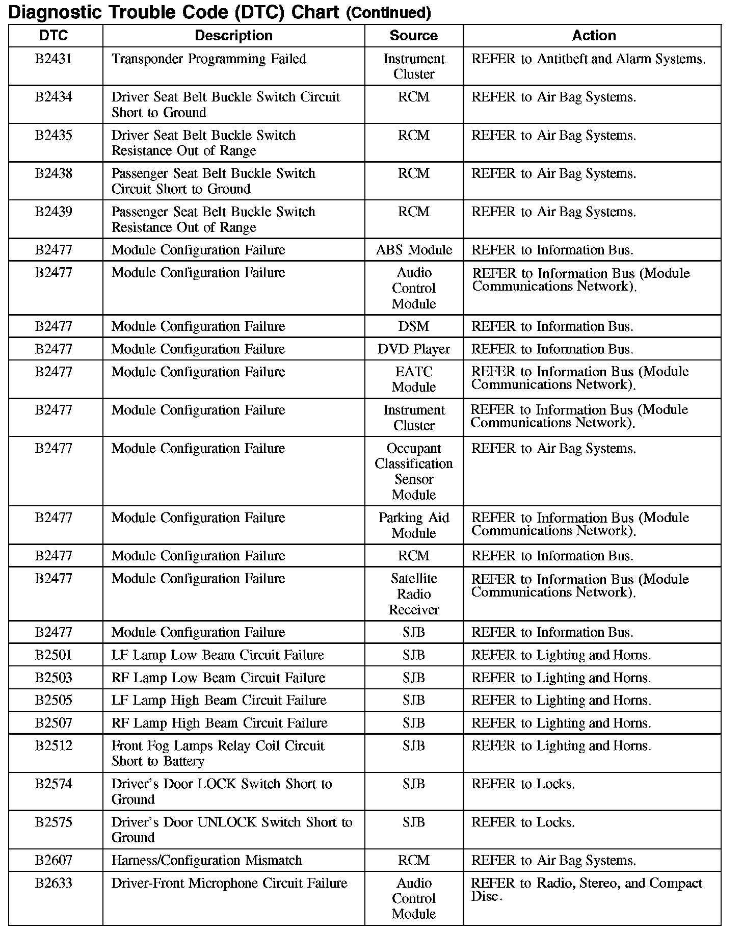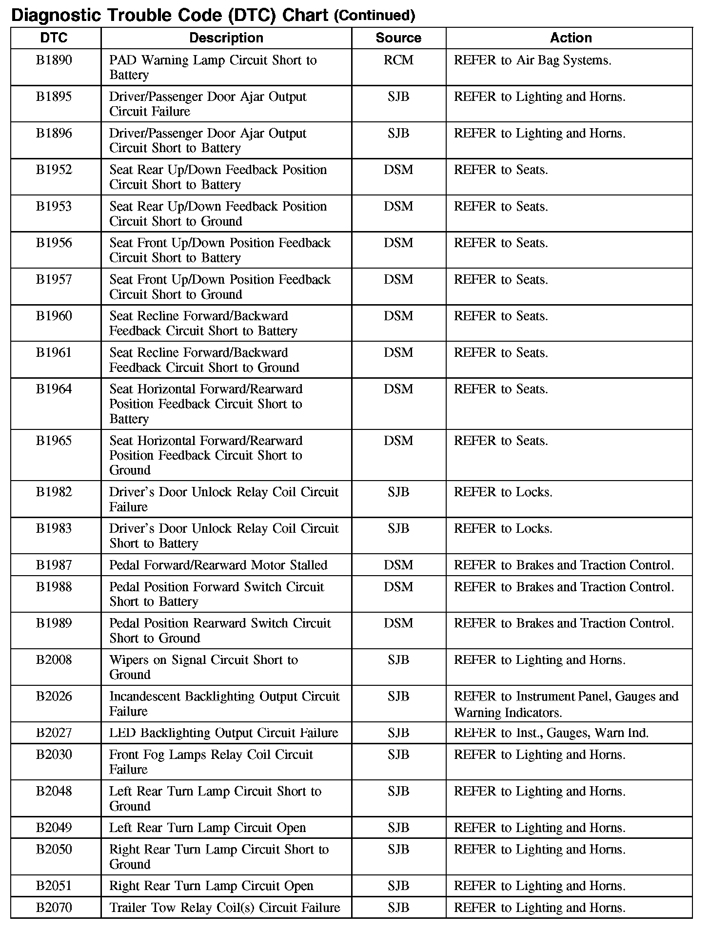 DIAGNOSTIC TROUBLE CODE (DTC) CHARTB1031-B1140: