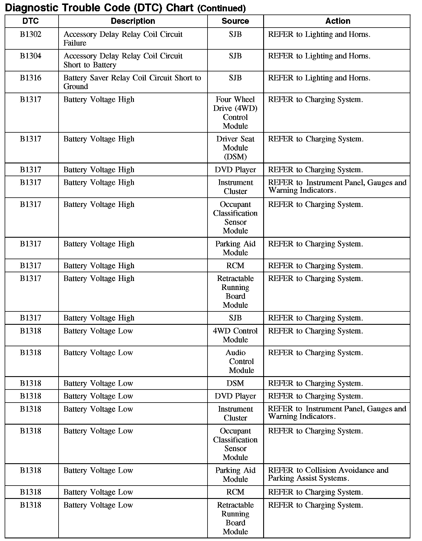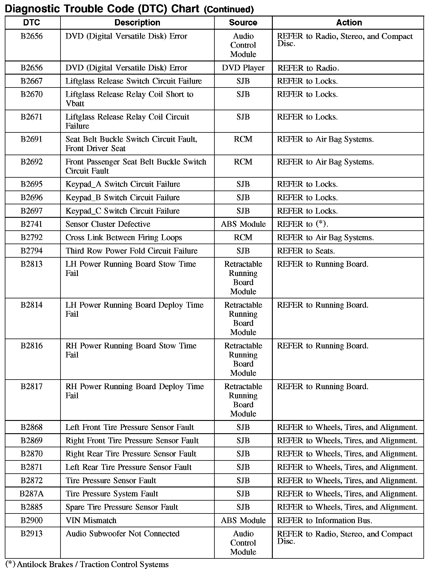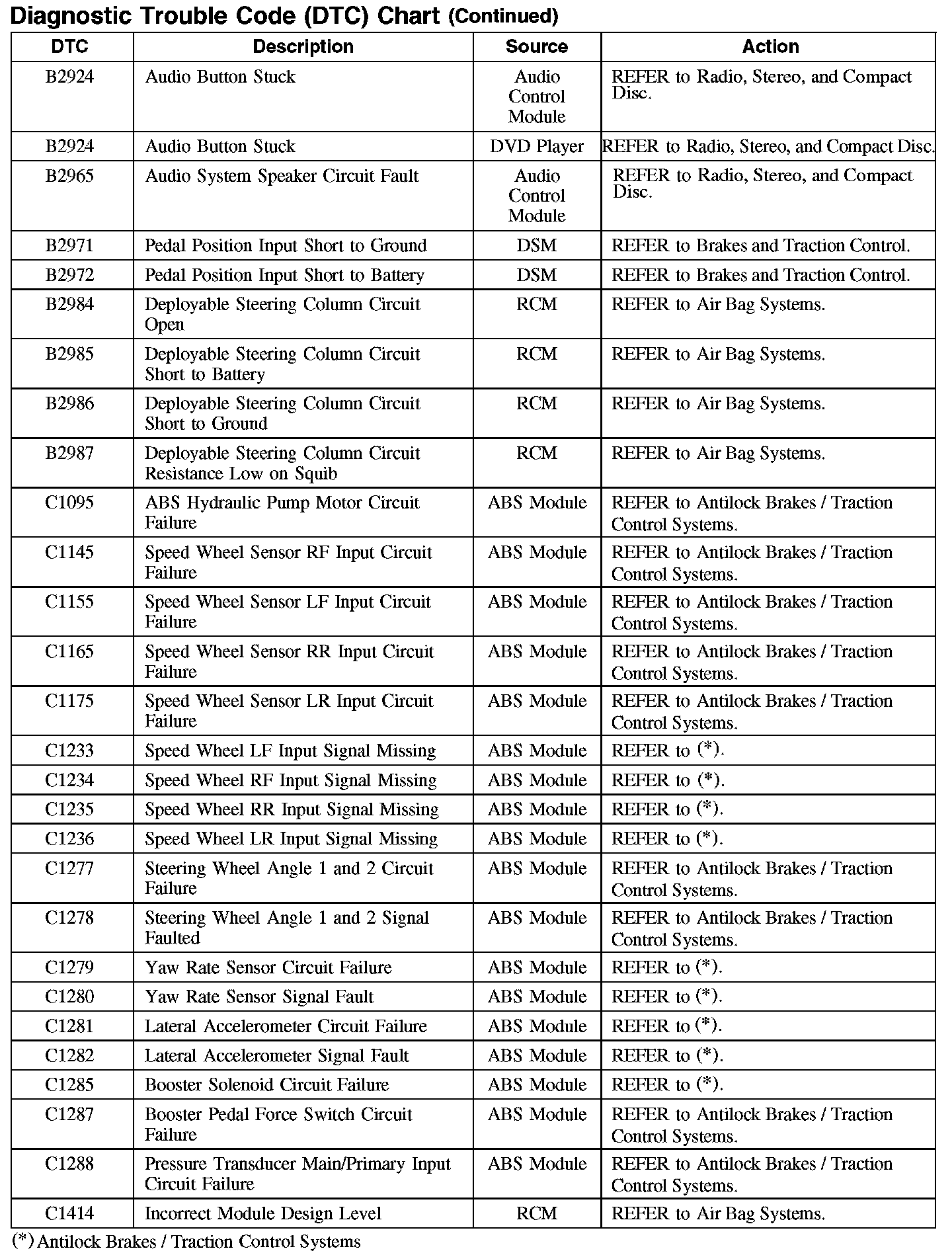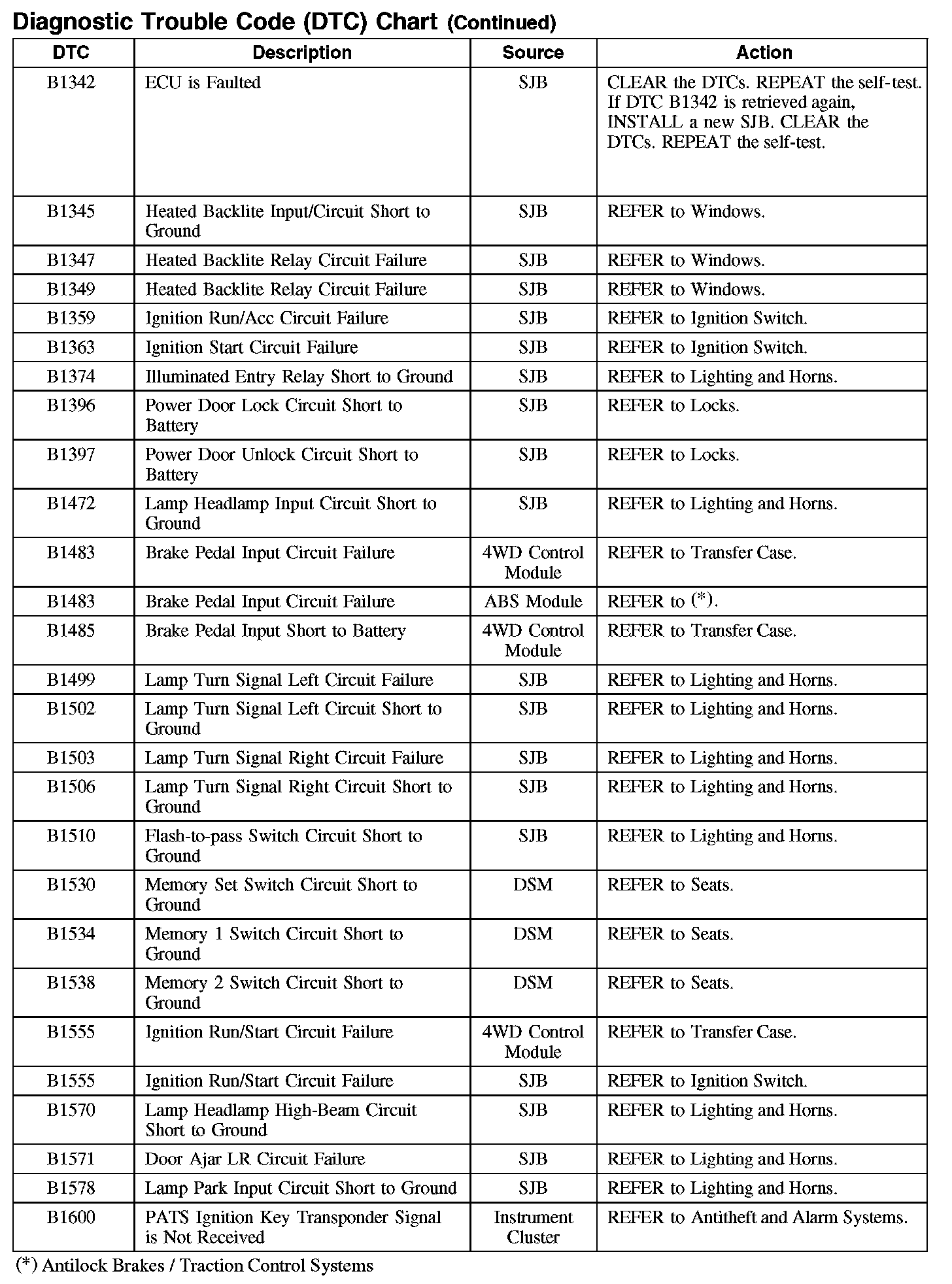 DIAGNOSTIC TROUBLE CODE (DTC) CHARTB1031-B1140: