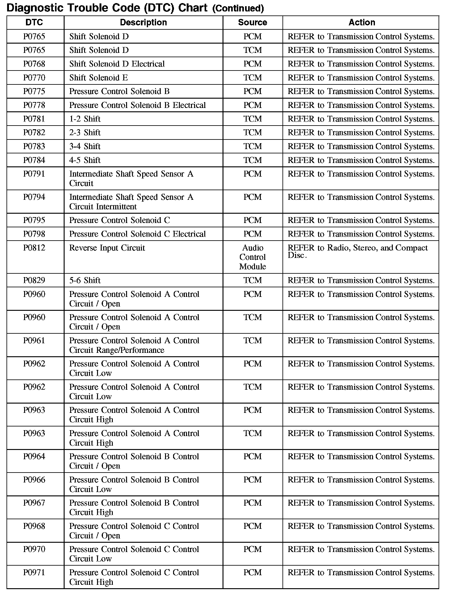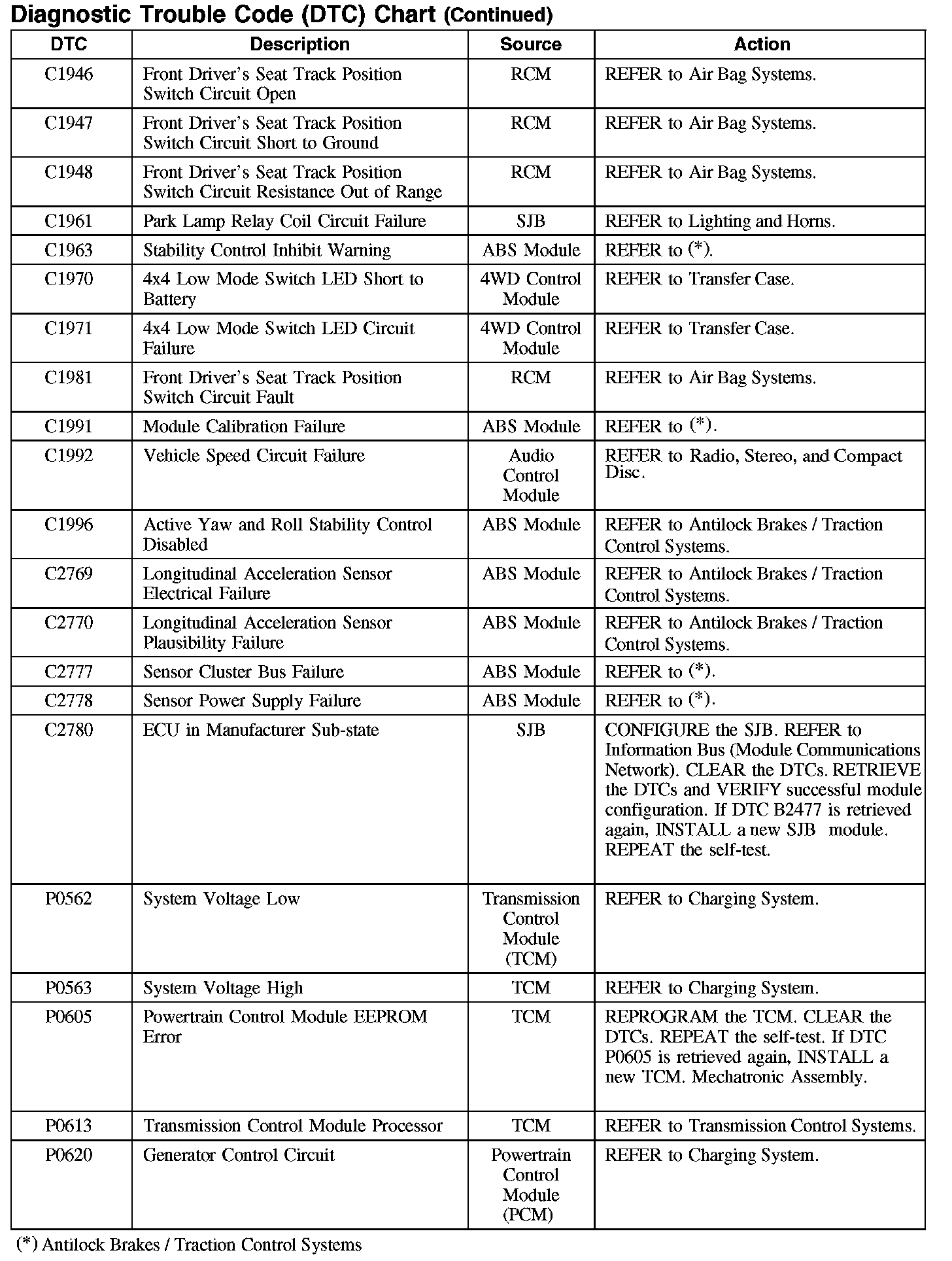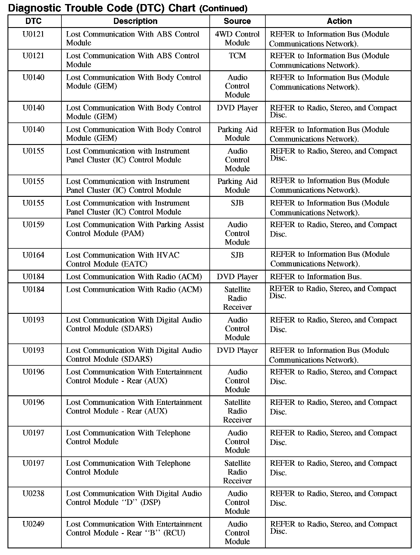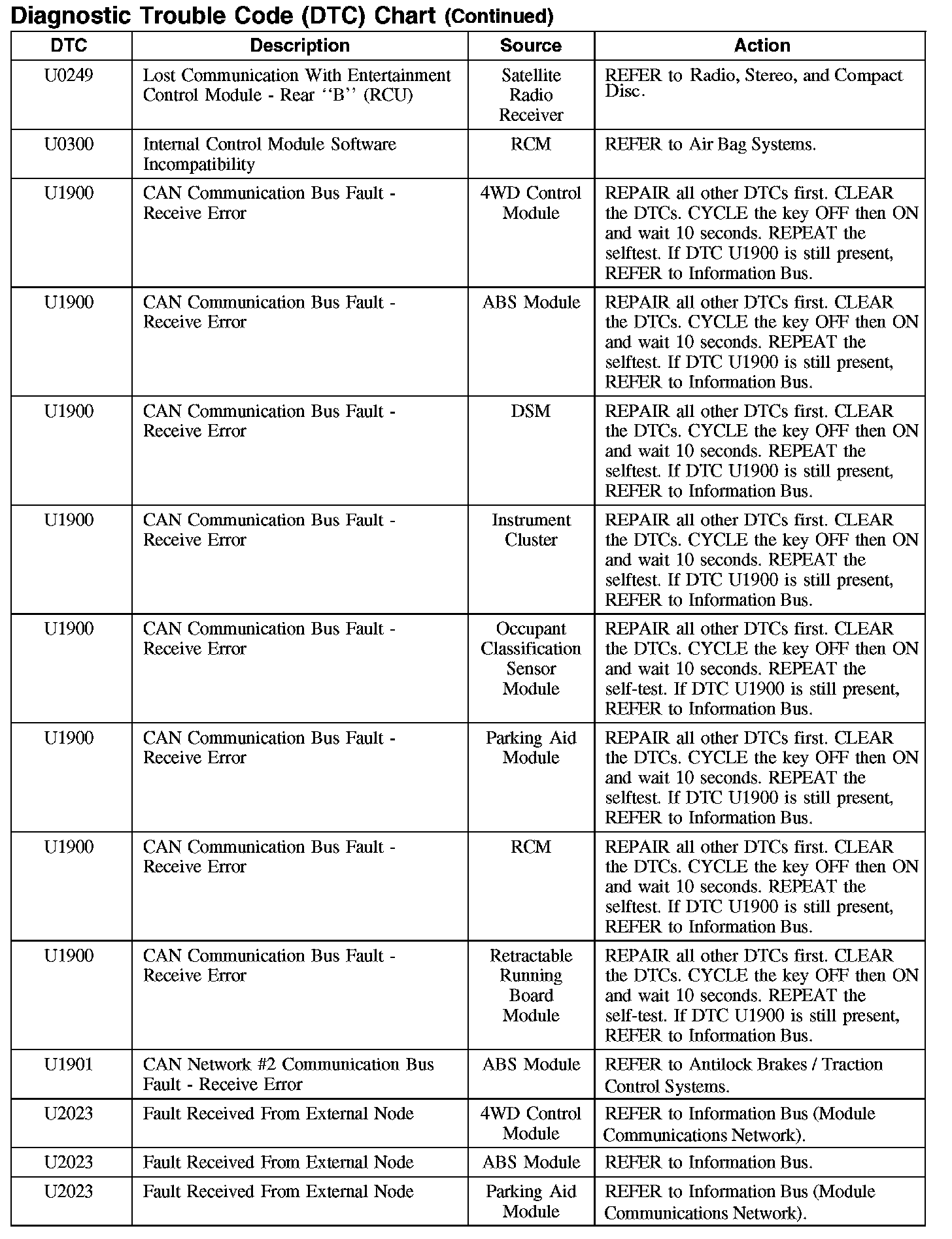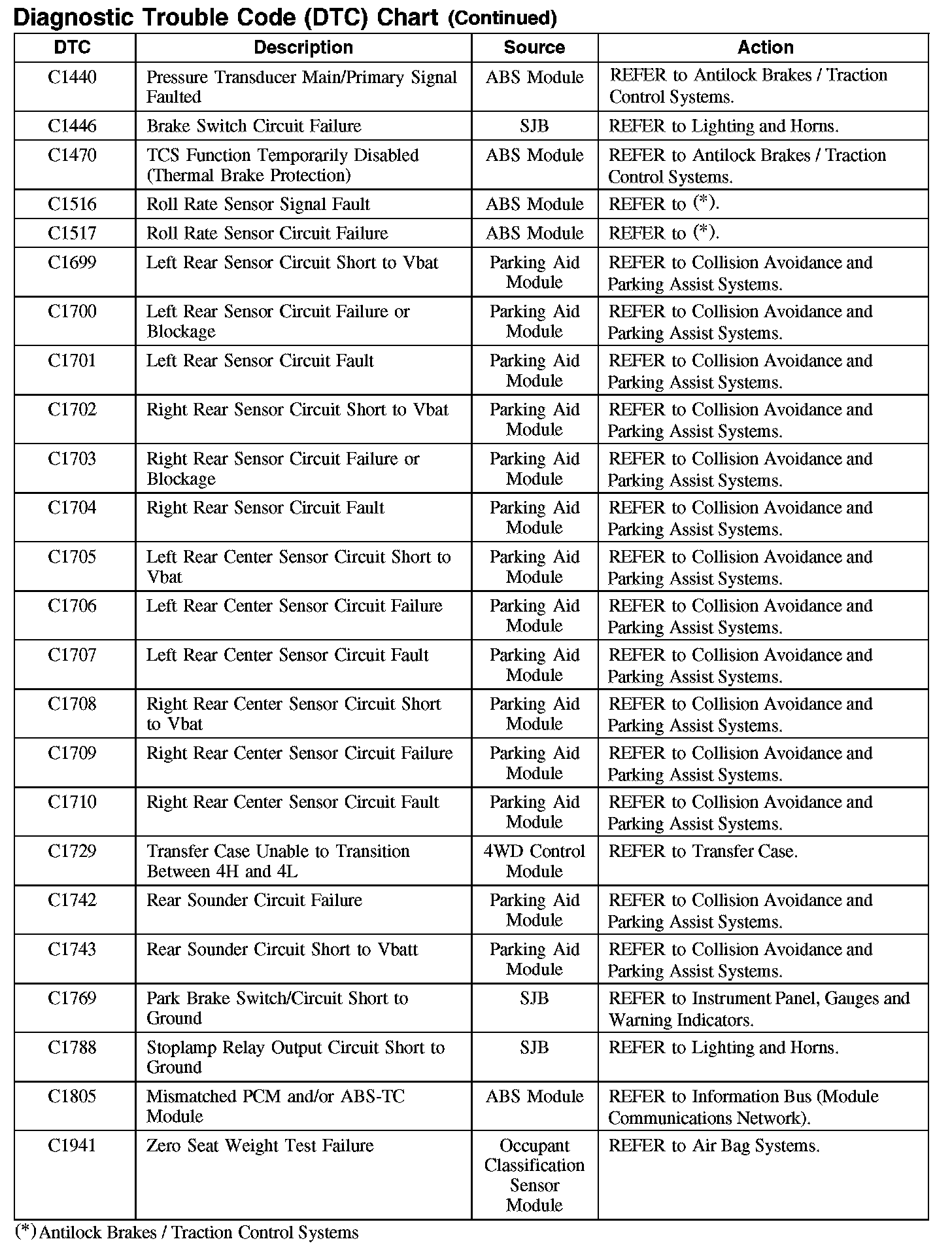 DIAGNOSTIC TROUBLE CODE (DTC) CHARTB1031-B1140:
