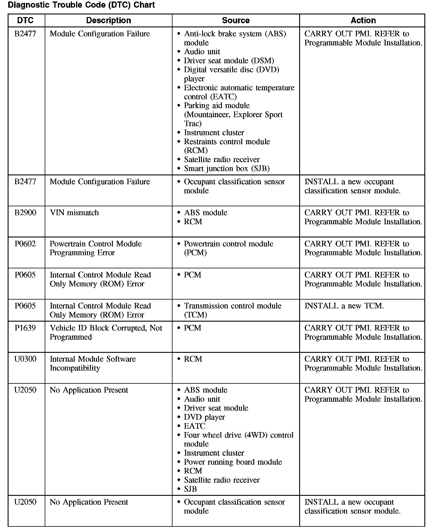 B2477-B2900 / P0602-P1639 / U0300-U2050: