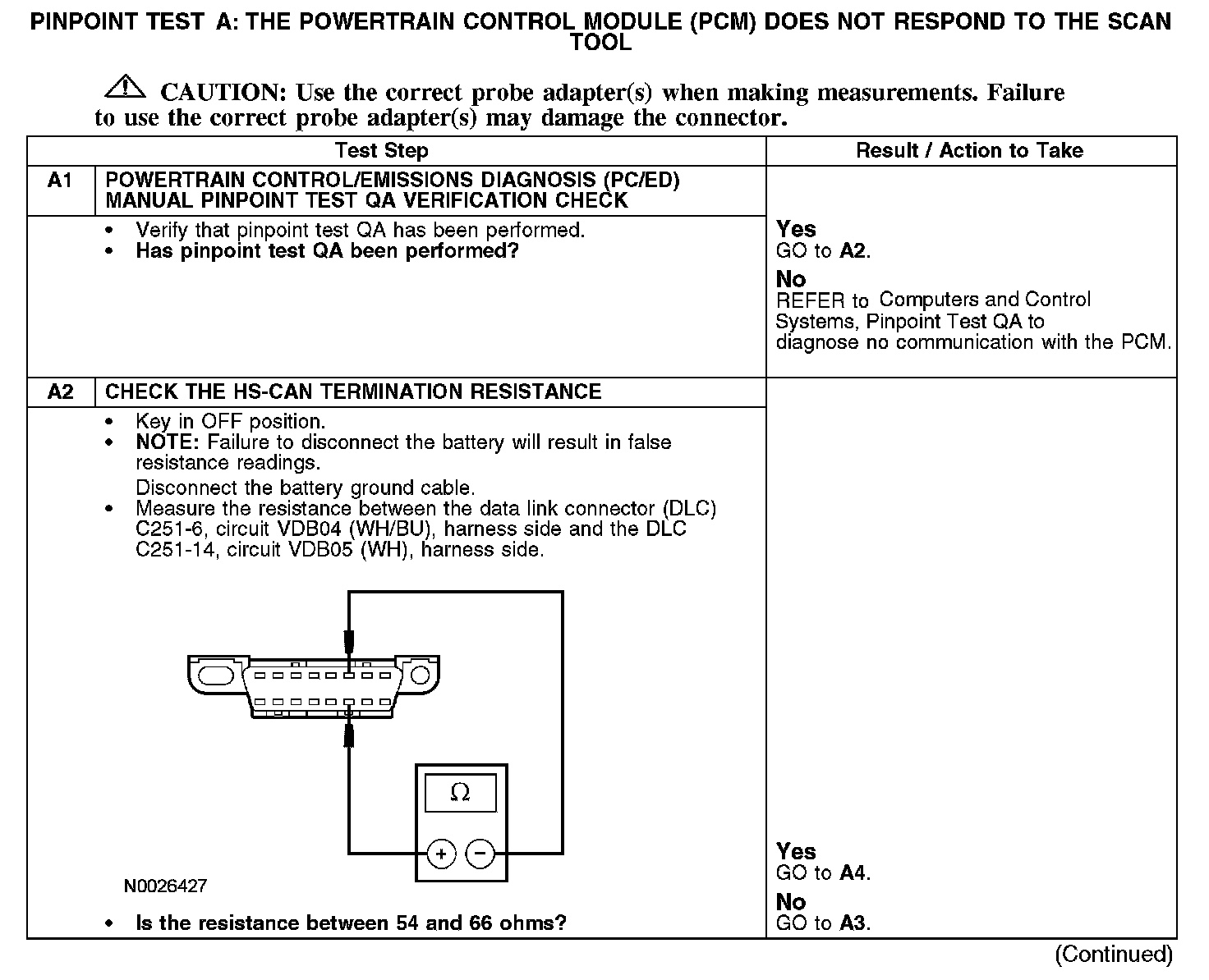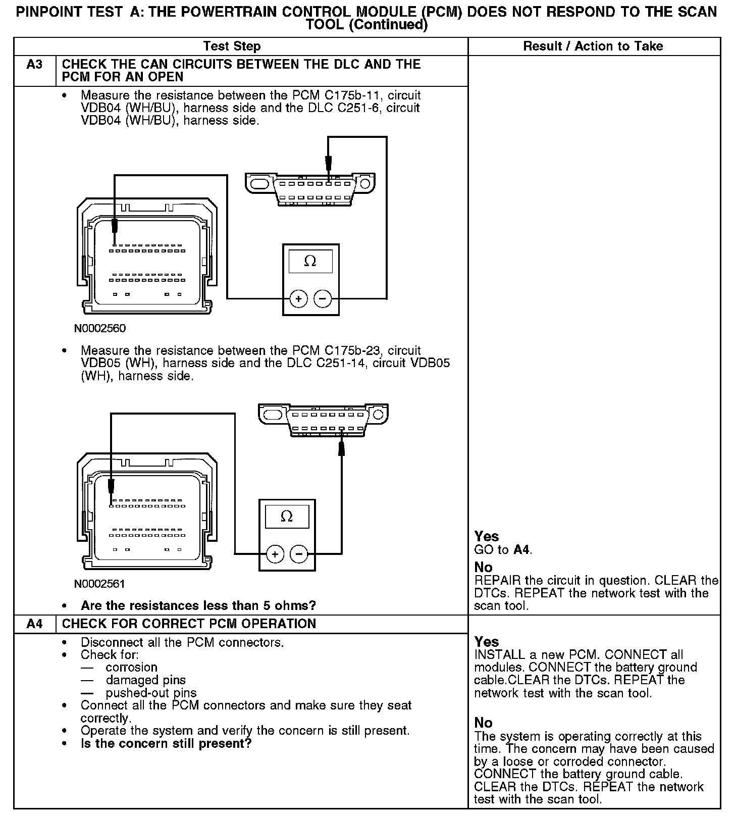 PINPOINT TEST A: THE POWERTRAIN CONTROL MODULE (PCM) DOES NOT RESPOND TO THE SCAN TOOLA1-A2: