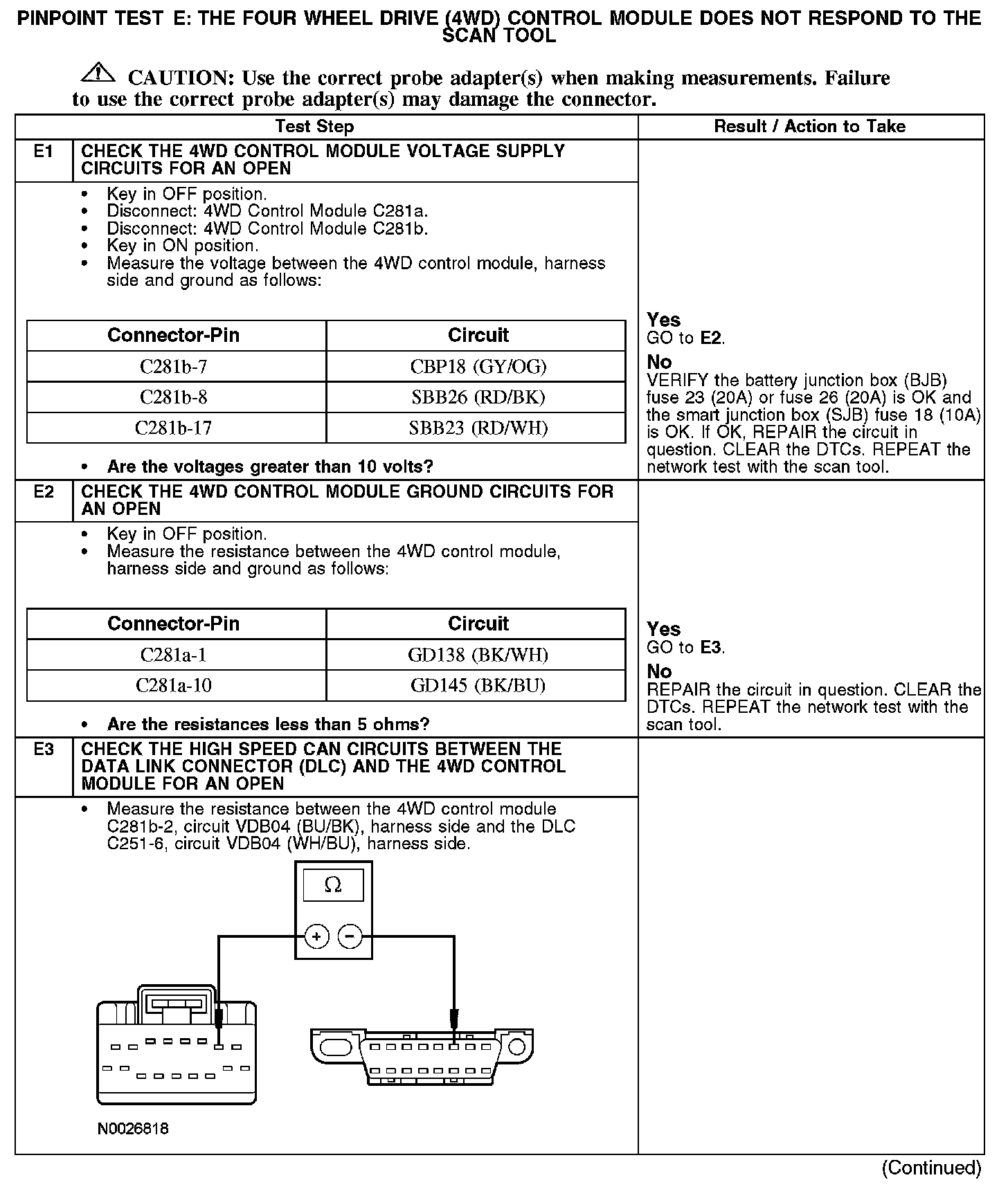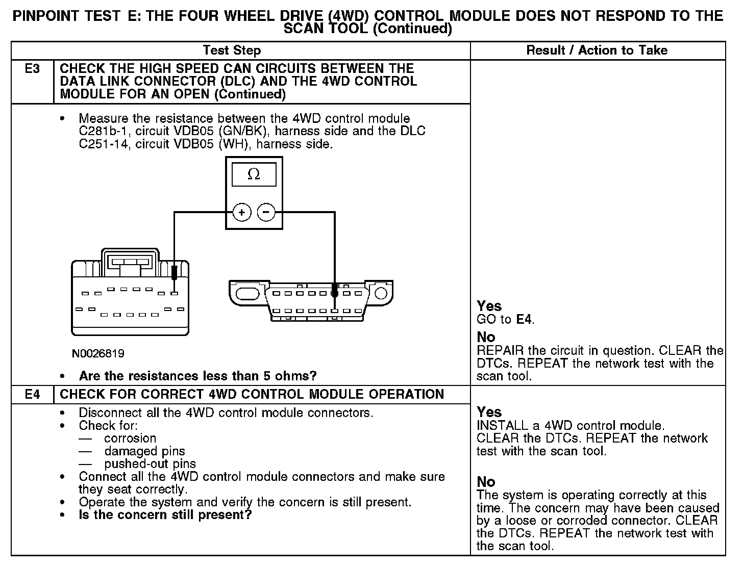 PINPOINT TEST E: THE FOUR WHEEL DRIVE (4WD) CONTROL MODULE DOES NOT RESPOND TO THE SCAN TOOLE1-E3: