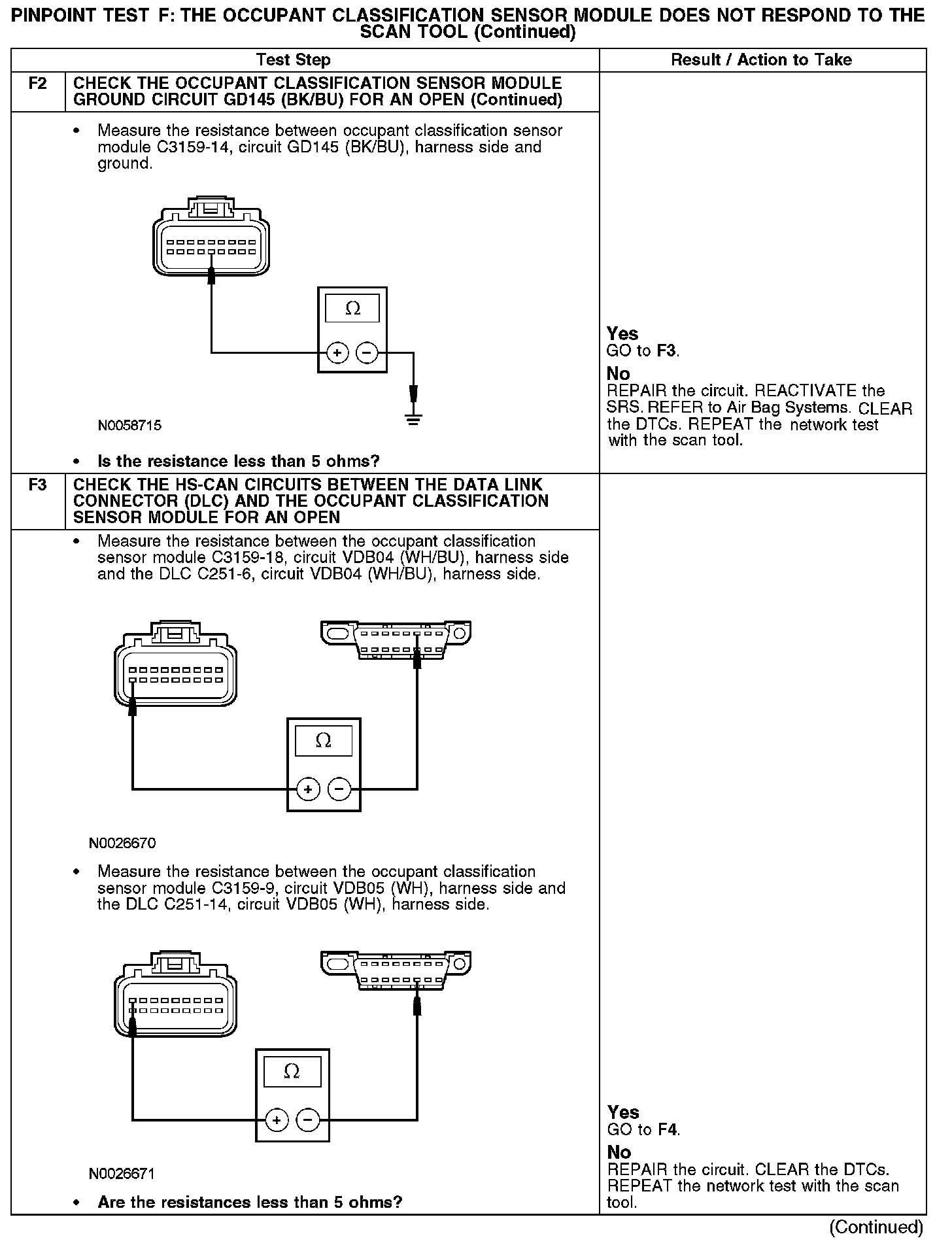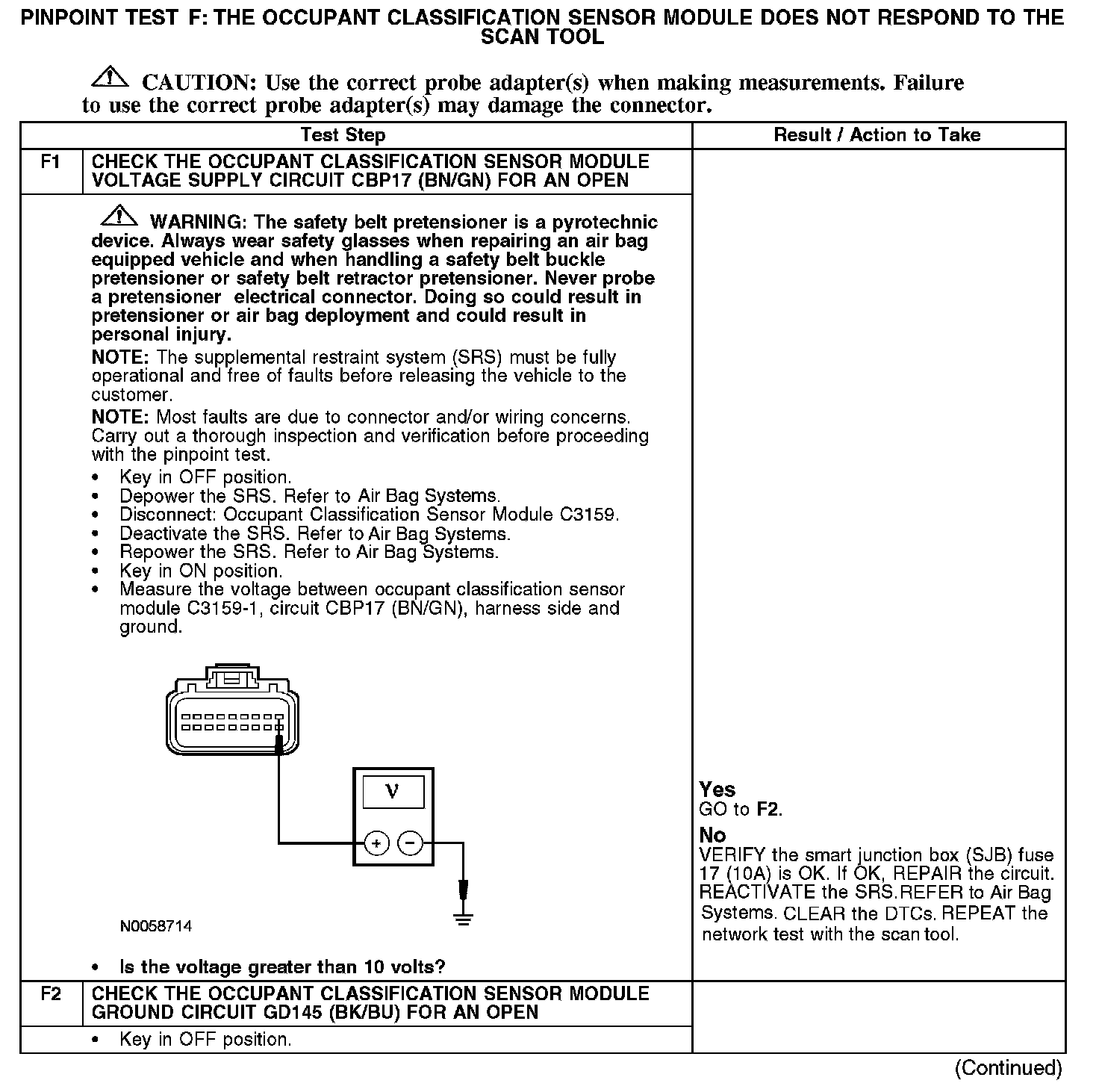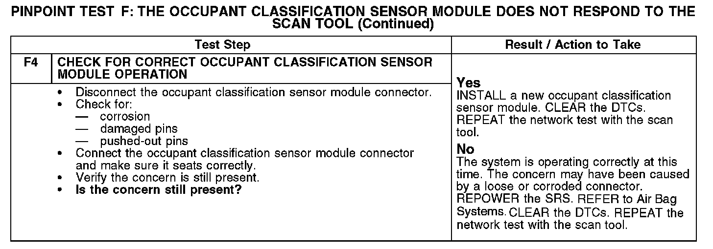 PINPOINT TEST F: THE OCCUPANT CLASSIFICATION SENSOR MODULE DOES NOT RESPOND TO THE SCAN TOOL