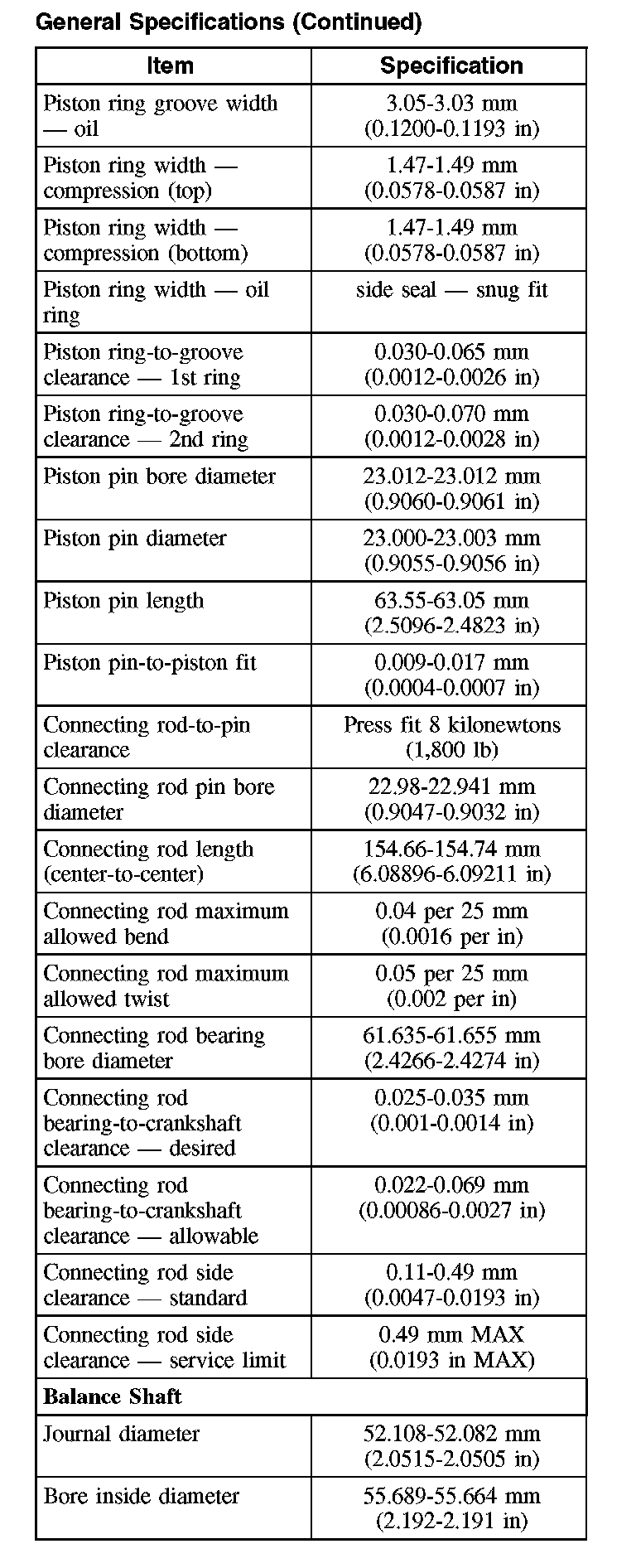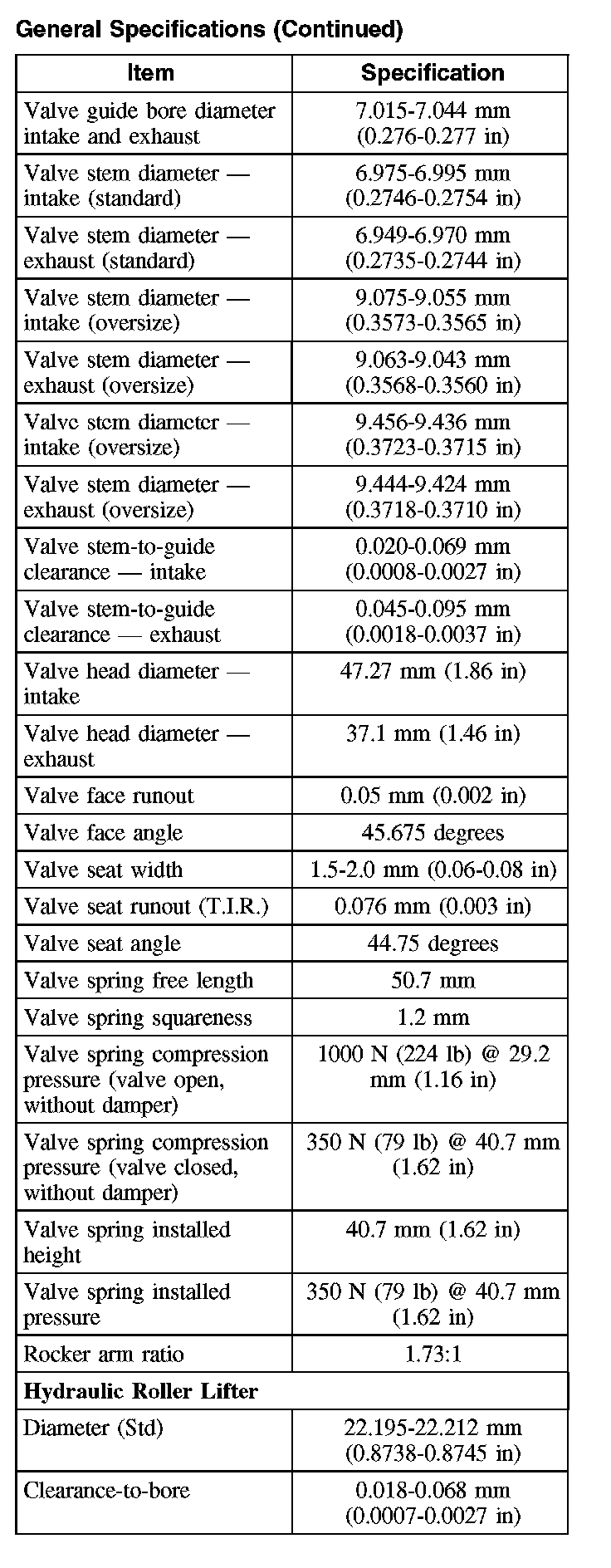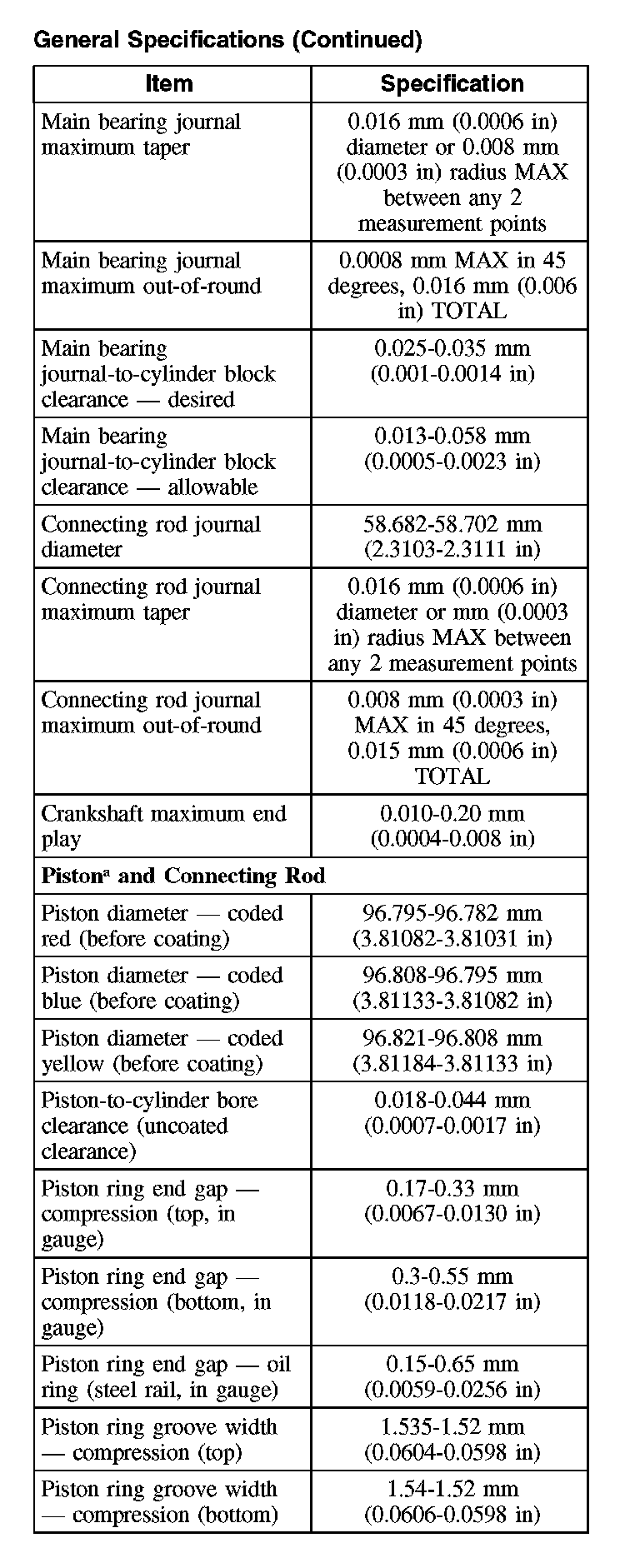 General Specifications