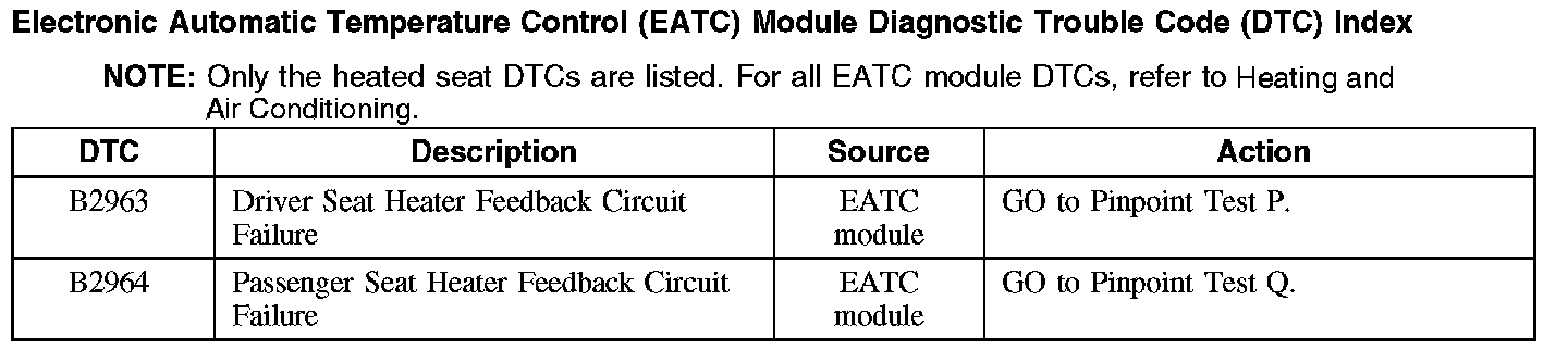Electronic Automatic Temperature Control (EATC) Module Diagnostic Trouble Code (DTC) Index