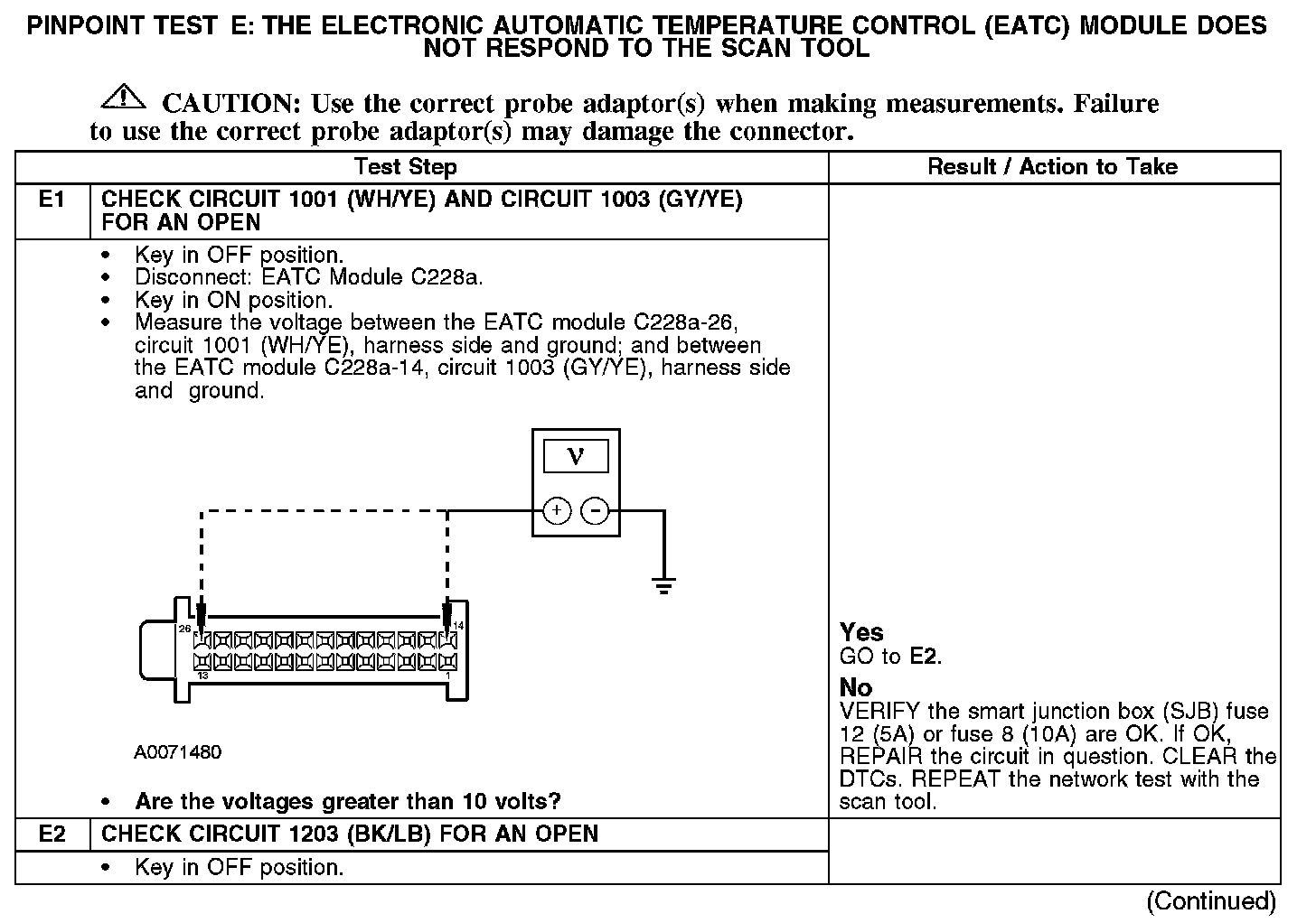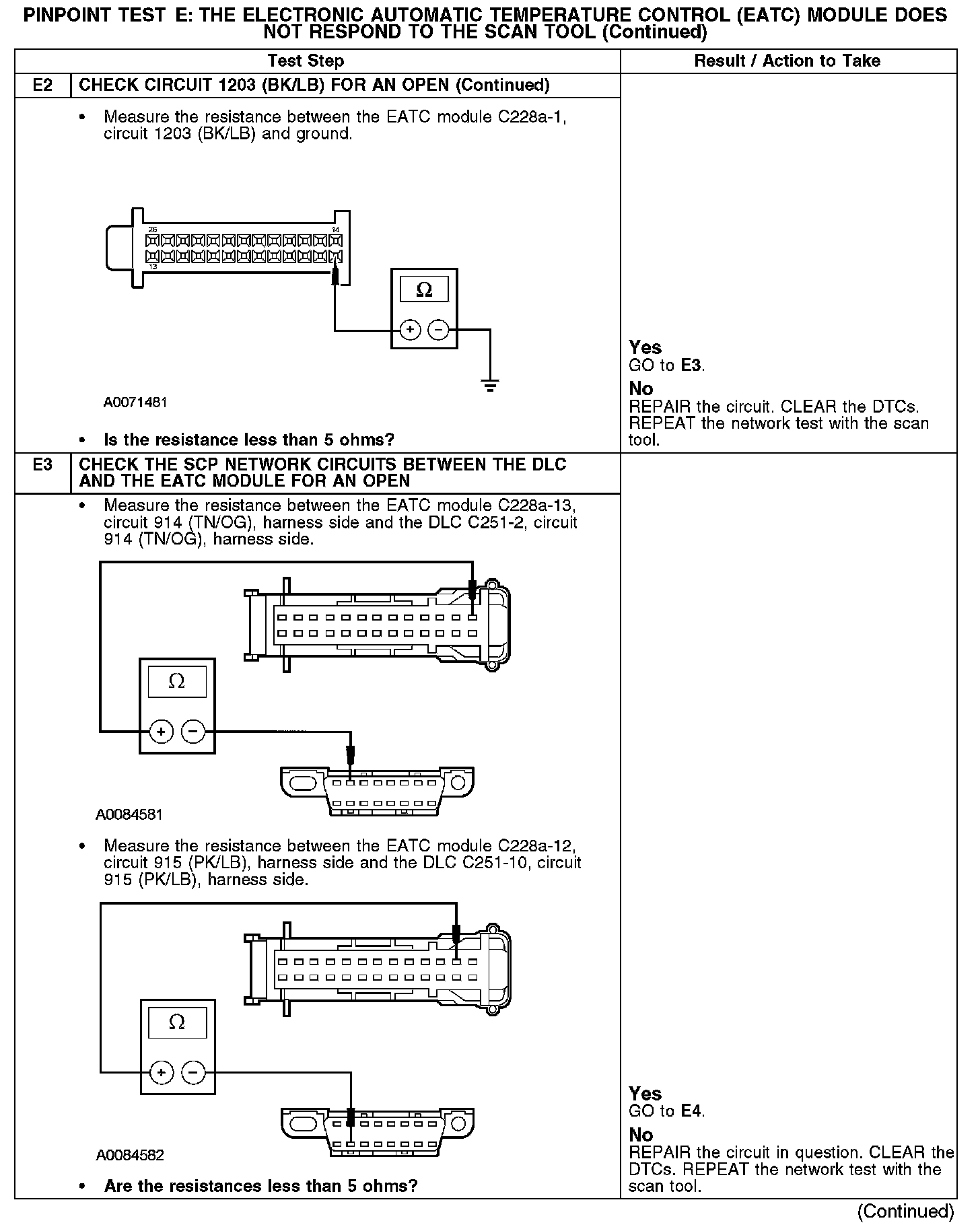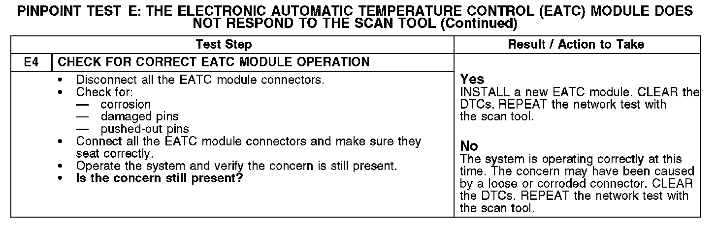 PINPOINT TEST E: THE ELECTRONIC AUTOMATIC TEMPERATURE CONTROL (EATC) MODULE DOES NOT RESPOND TO THE SCAN TOOLE1-E2: