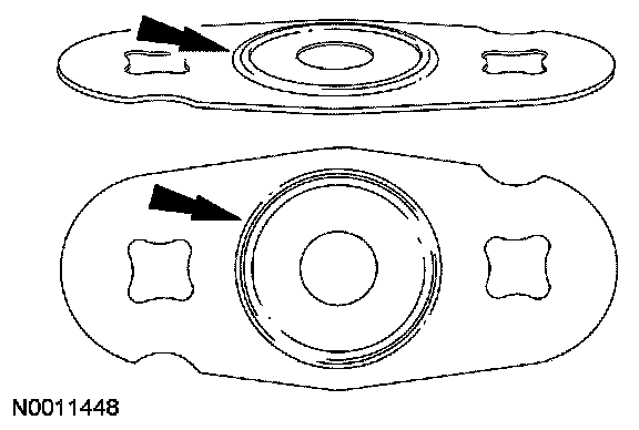 - Install a new EGR system module gasket with the side with the raised circle facing the intake manifold.