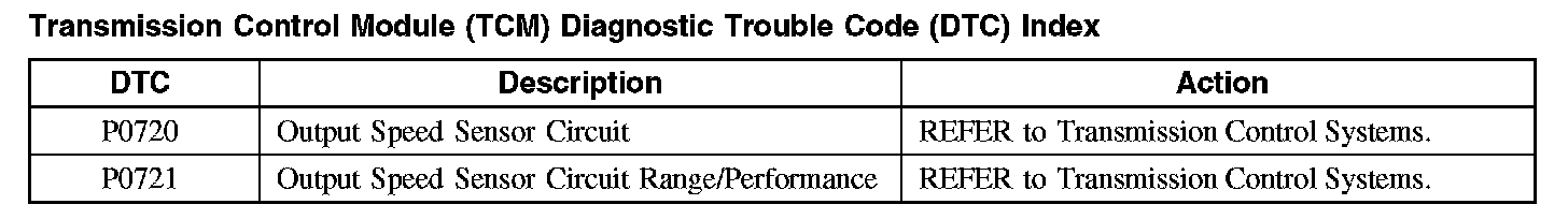 Transmission Control Module (TCM) Diagnostic Trouble Code (DTC) Index