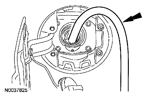 - Make sure the alignment arrows on the fuel pump module and the fuel tank meet before tightening the fuel pump module lock ring.
