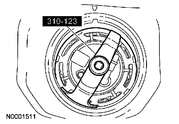 23. Install the special tool and remove the fuel pump module lock ring.