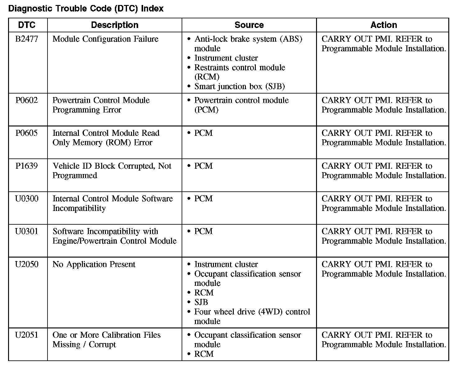 B2477 / P0602-P1639 / U0300-U2051: