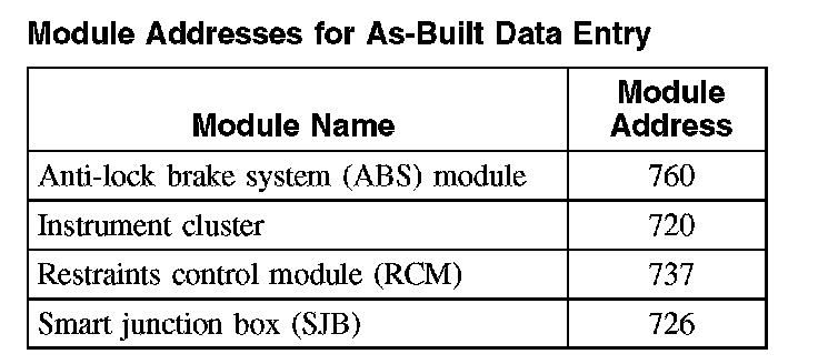 NOTE: It is not necessary to obtain As-Built data unless directed to do so by the scan tool. This data may be accessed from the technician service publication website.