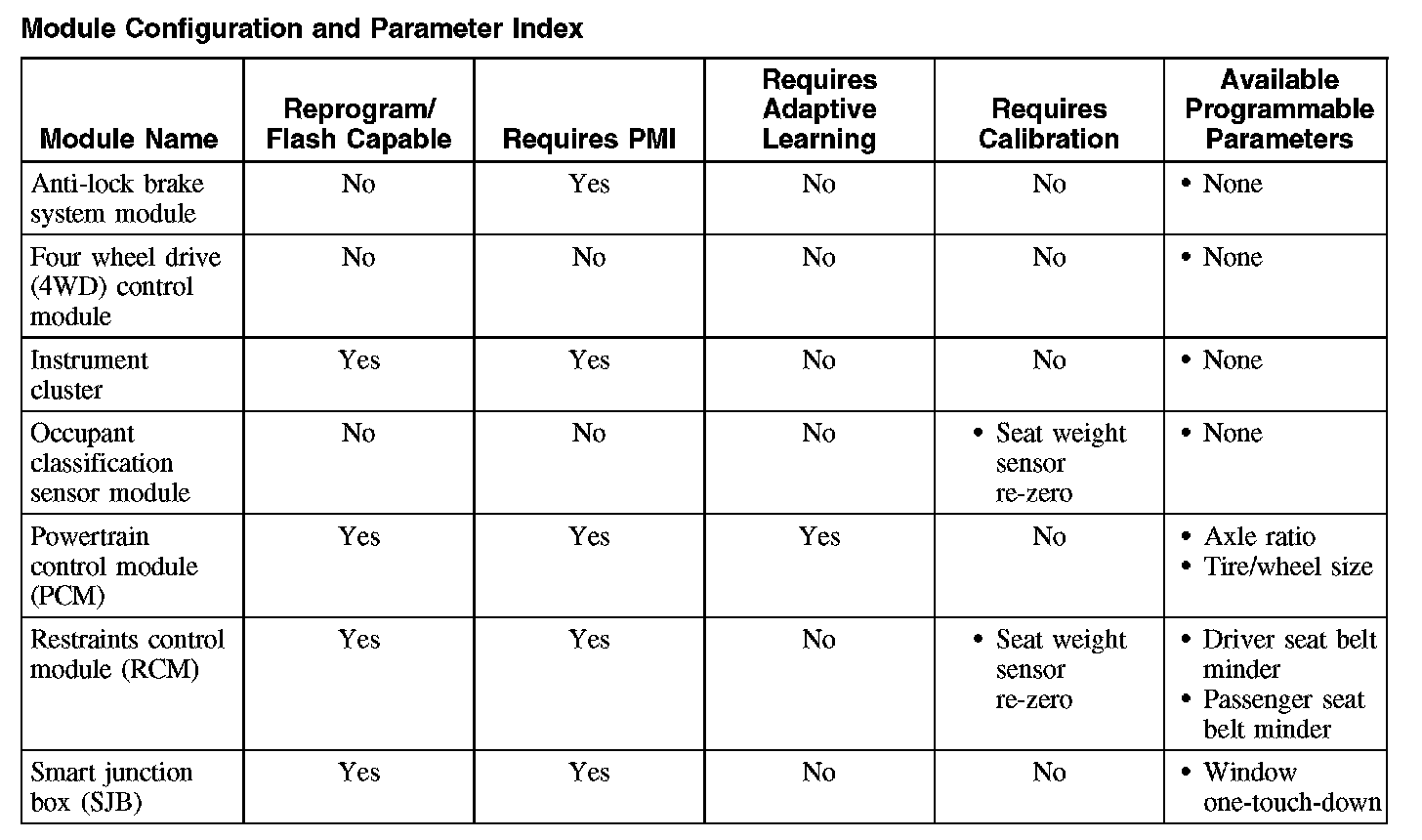 Programmable parameters are customer preference items that may be modified by the dealer via scan tool or in some cases modified by the customer following a procedure listed in the vehicle Owner's Literature. While many configuration options may exist for a module, only a few of these options are programmable parameters.