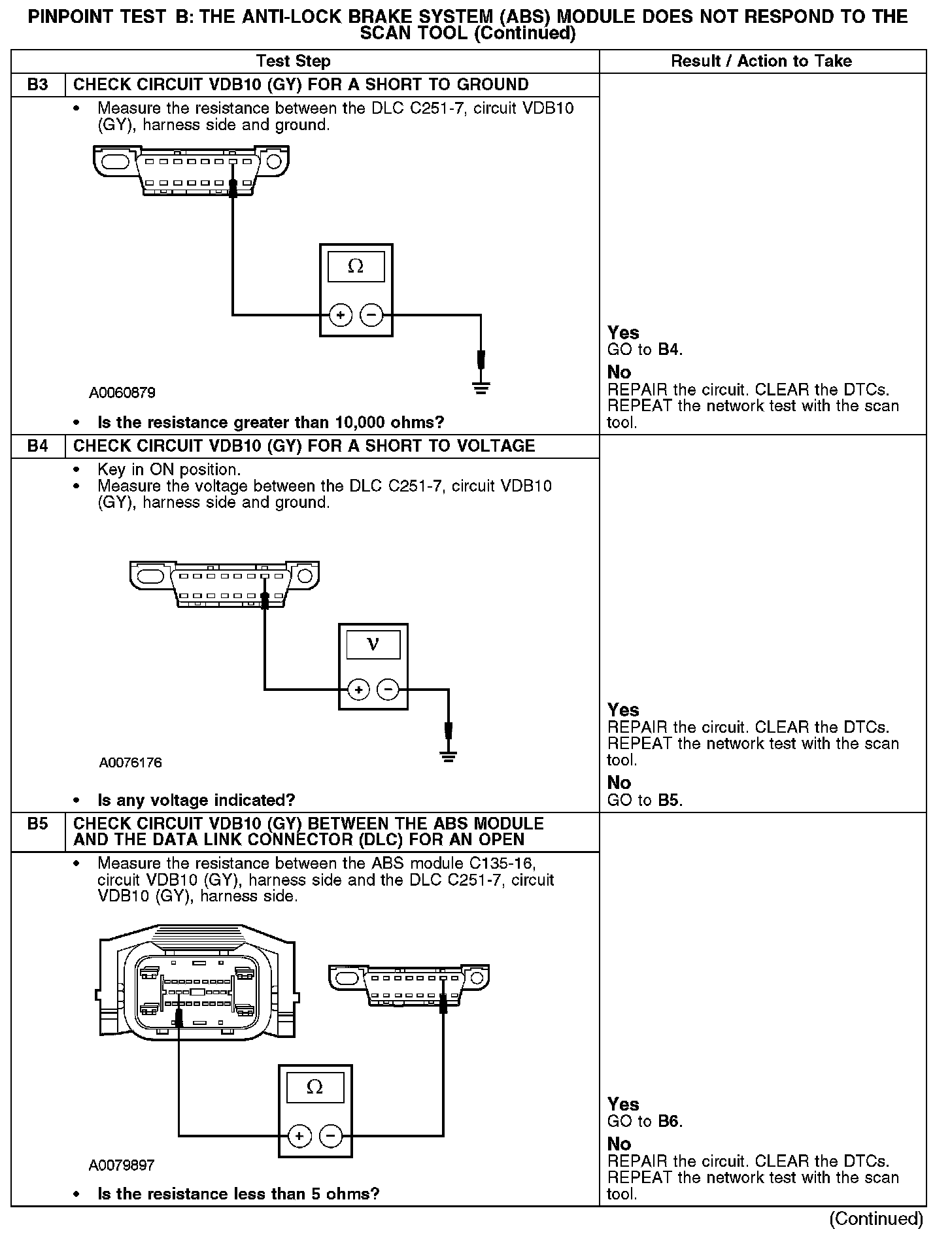 - Circuit VDB10 (GY) open, short to ground or voltage