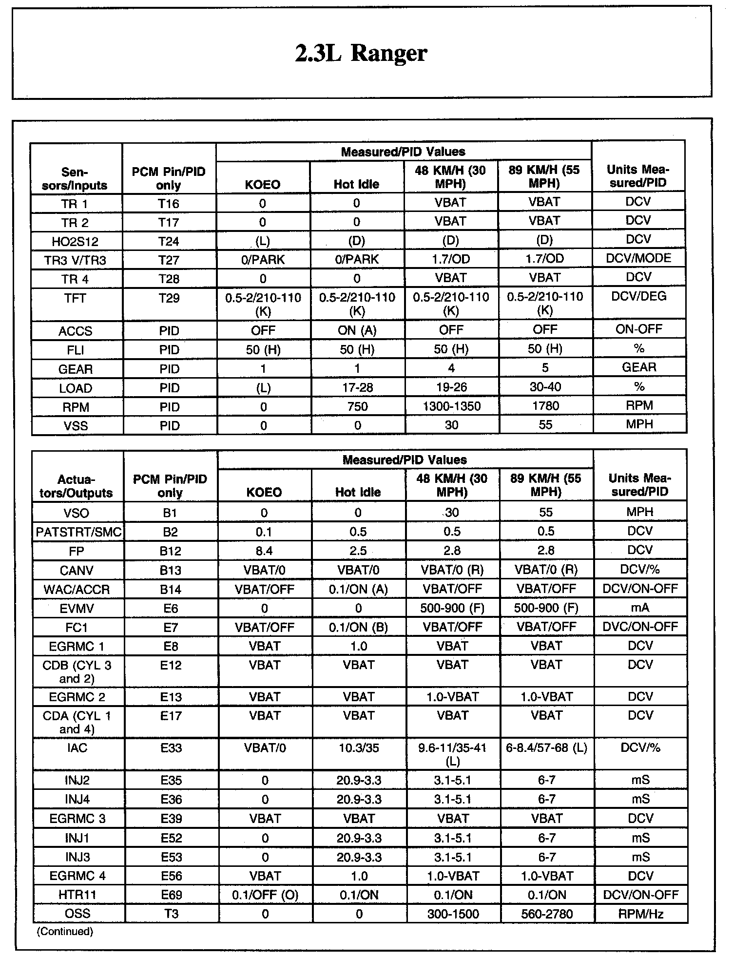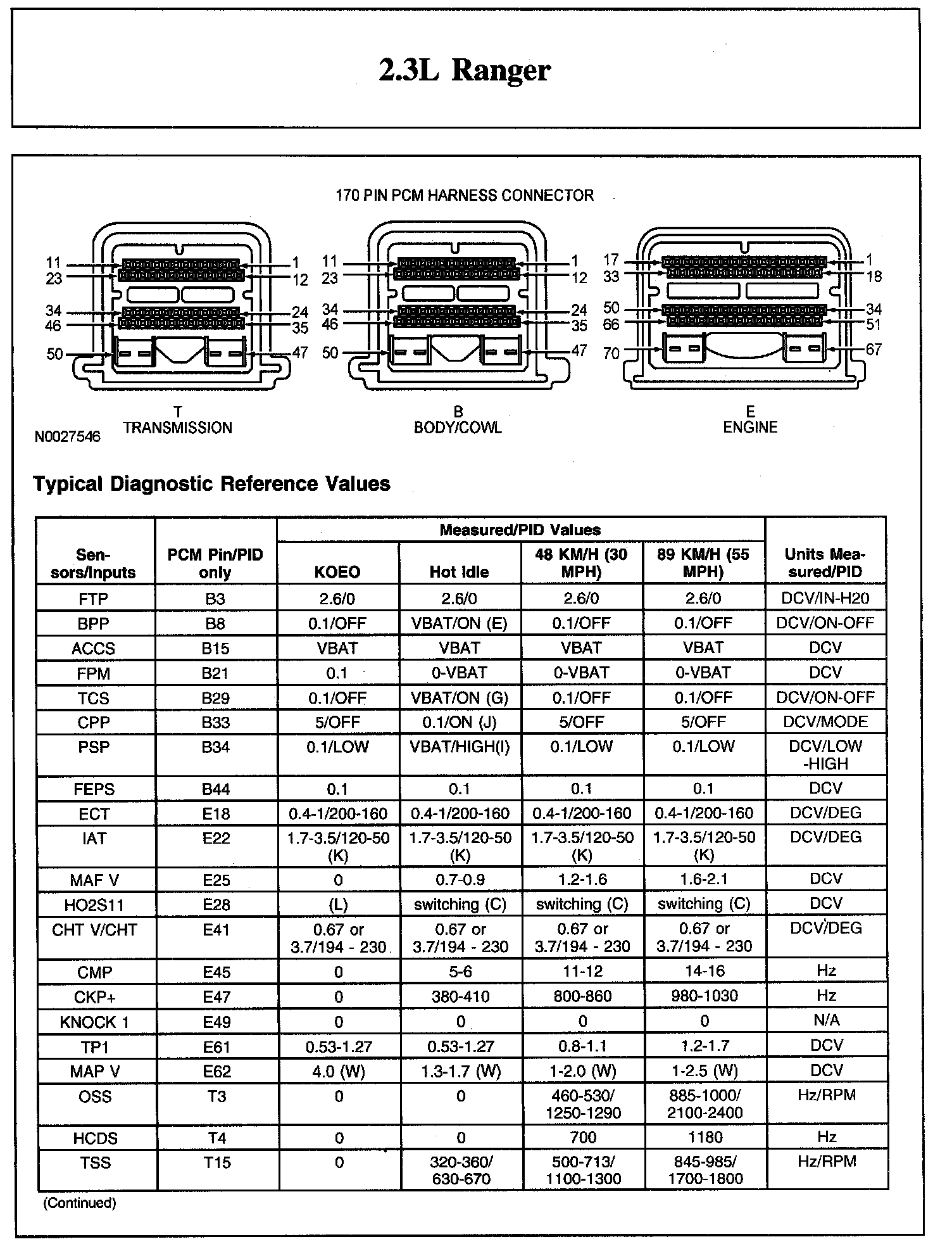 The Typical Diagnostic Reference Value Charts do not display fault parameter identifications (PIDs). These are PIDs which indicate a hard fault with the circuit. They display a value of YES or NO and are PIDs ending with the letter F.