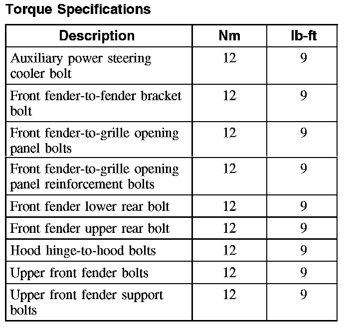 Torque Specifcations: