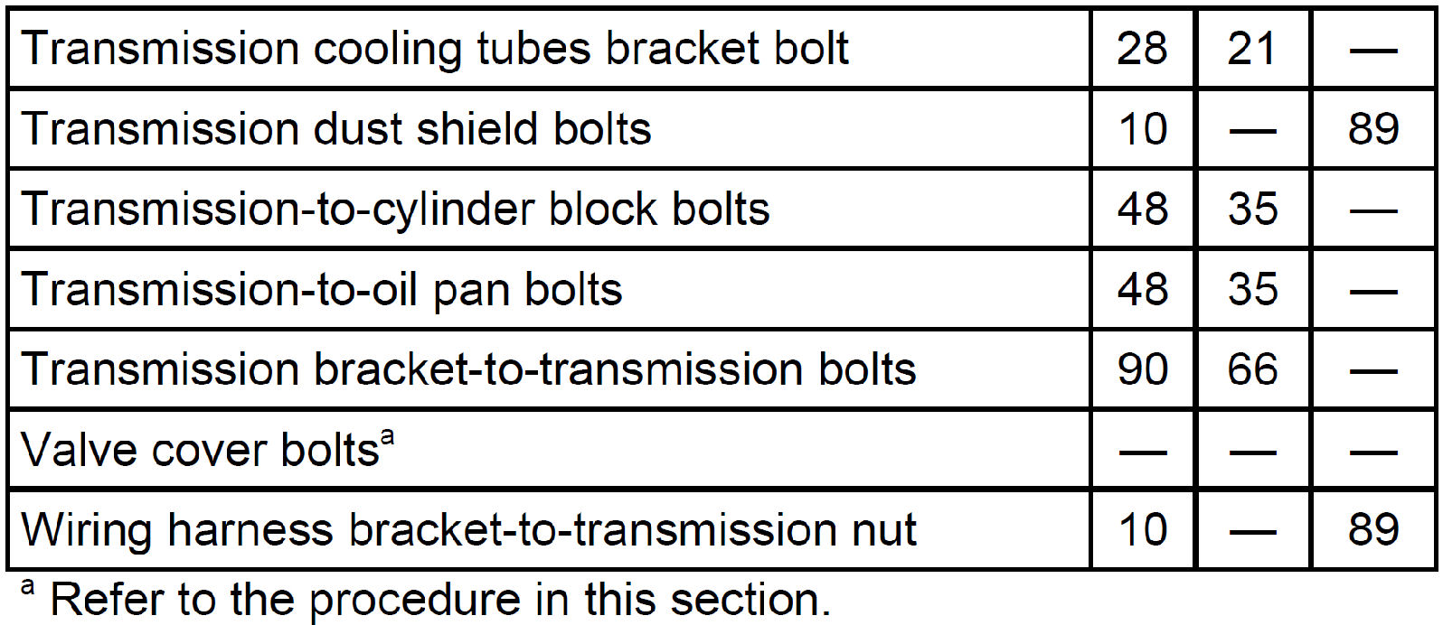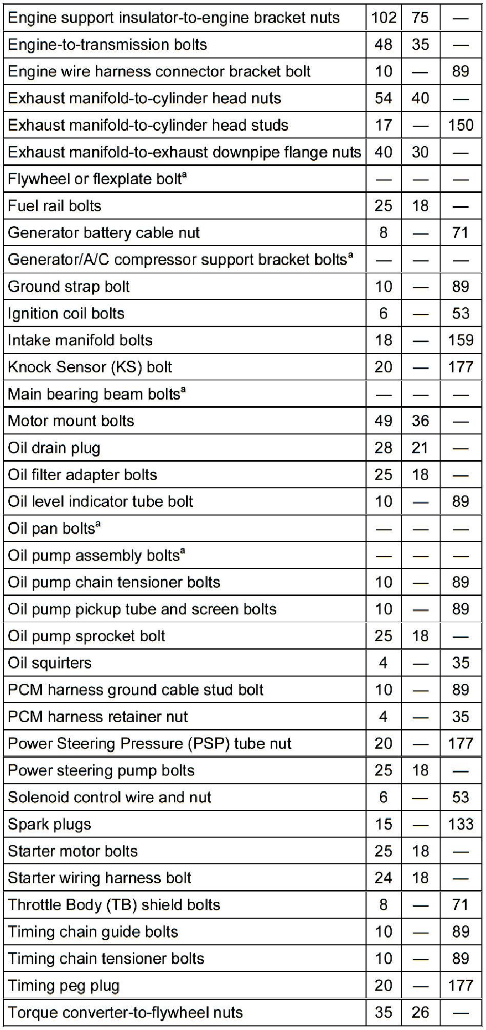 Torque Specifications