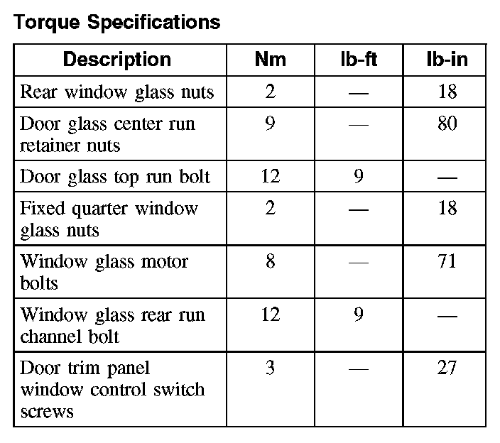 Torque Specifications:
