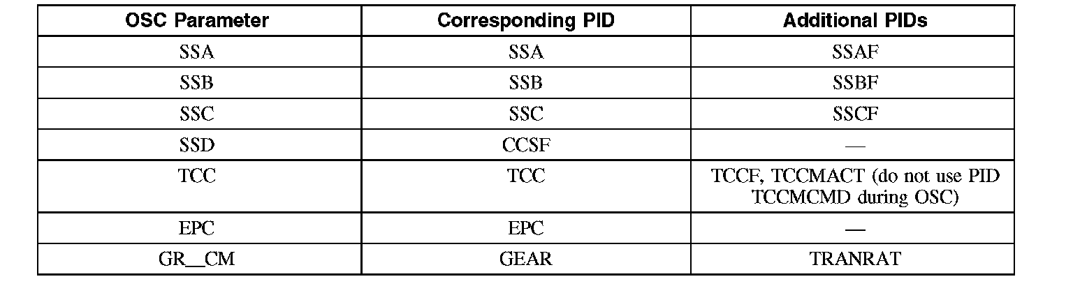 To confirm that the OSC value was sent by the scan tool and the PCM has accepted the OSC substitution, a corresponding PID for each OSC parameter must be monitored. Additional PIDs should be monitored to help the technician adequately diagnose the transmission.