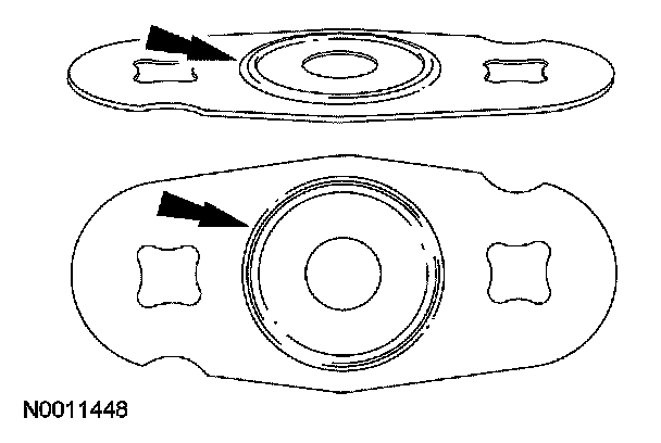 - Install a new EGR system module gasket with the side with the raised ring facing the intake manifold.