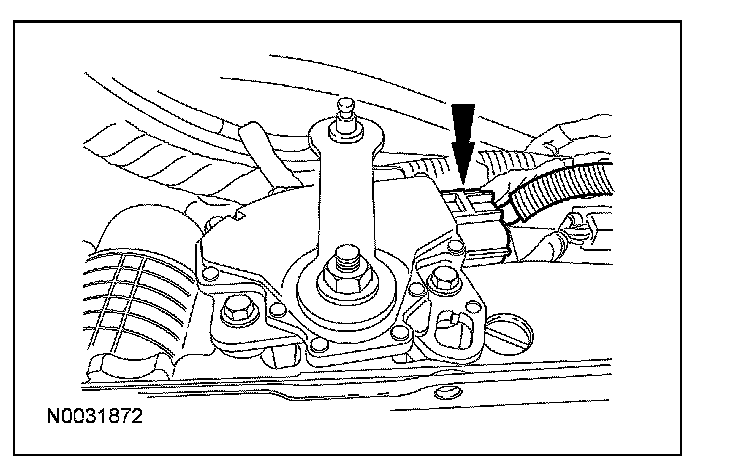 CAUTION: Do not pry on the swivel tube to disconnect the transmission shift linkage.