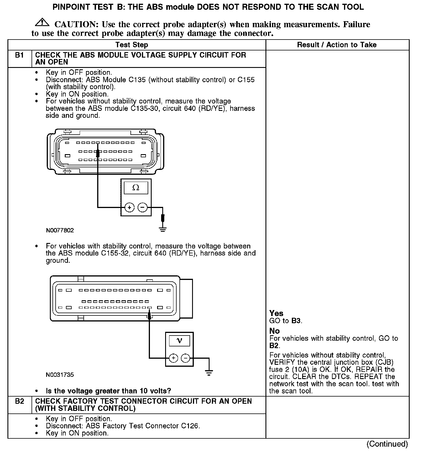 Test B: The ABS Module Does Not Respond To The Scan Tool