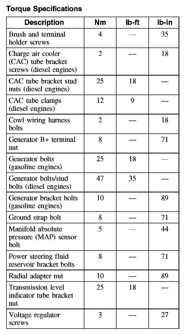 Torque Specifications:
