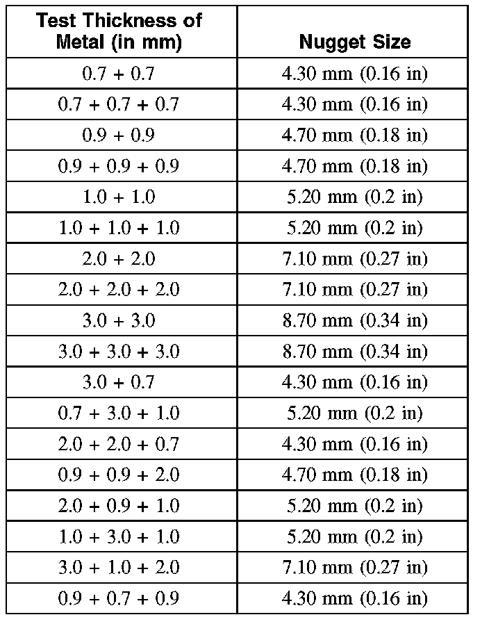 Weld Nugget Chart