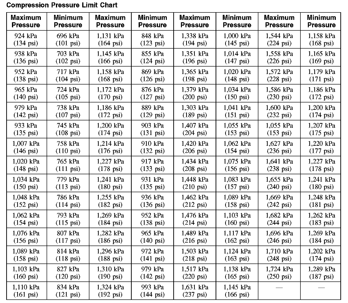 The indicated compression pressures are considered within specification if the lowest reading cylinder is at least 75% of the highest reading.