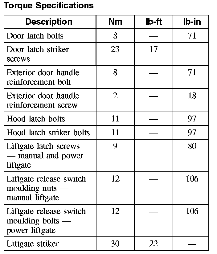 Torque Specifications: