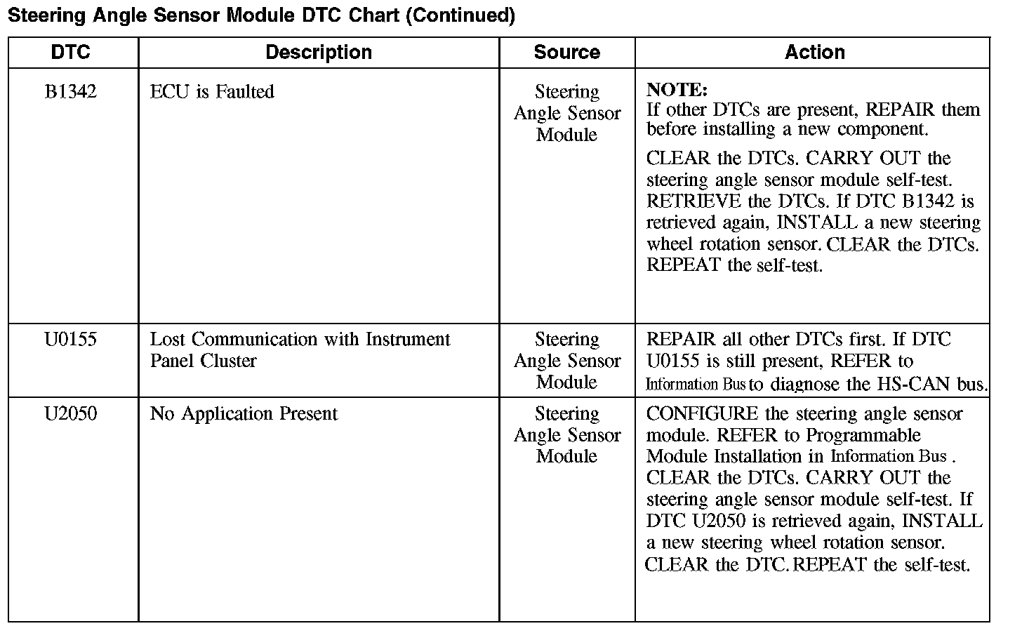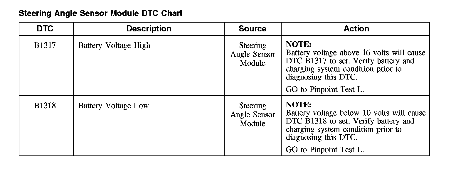 Steering Angle Sensor Module DTC Chart