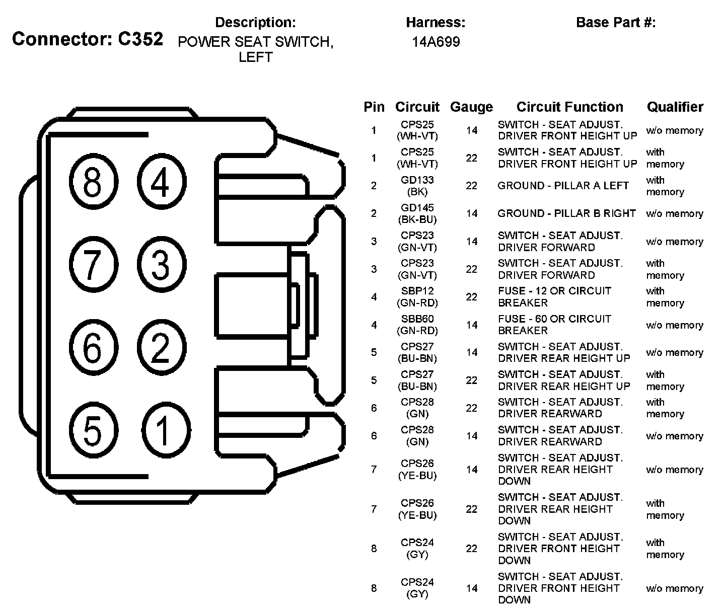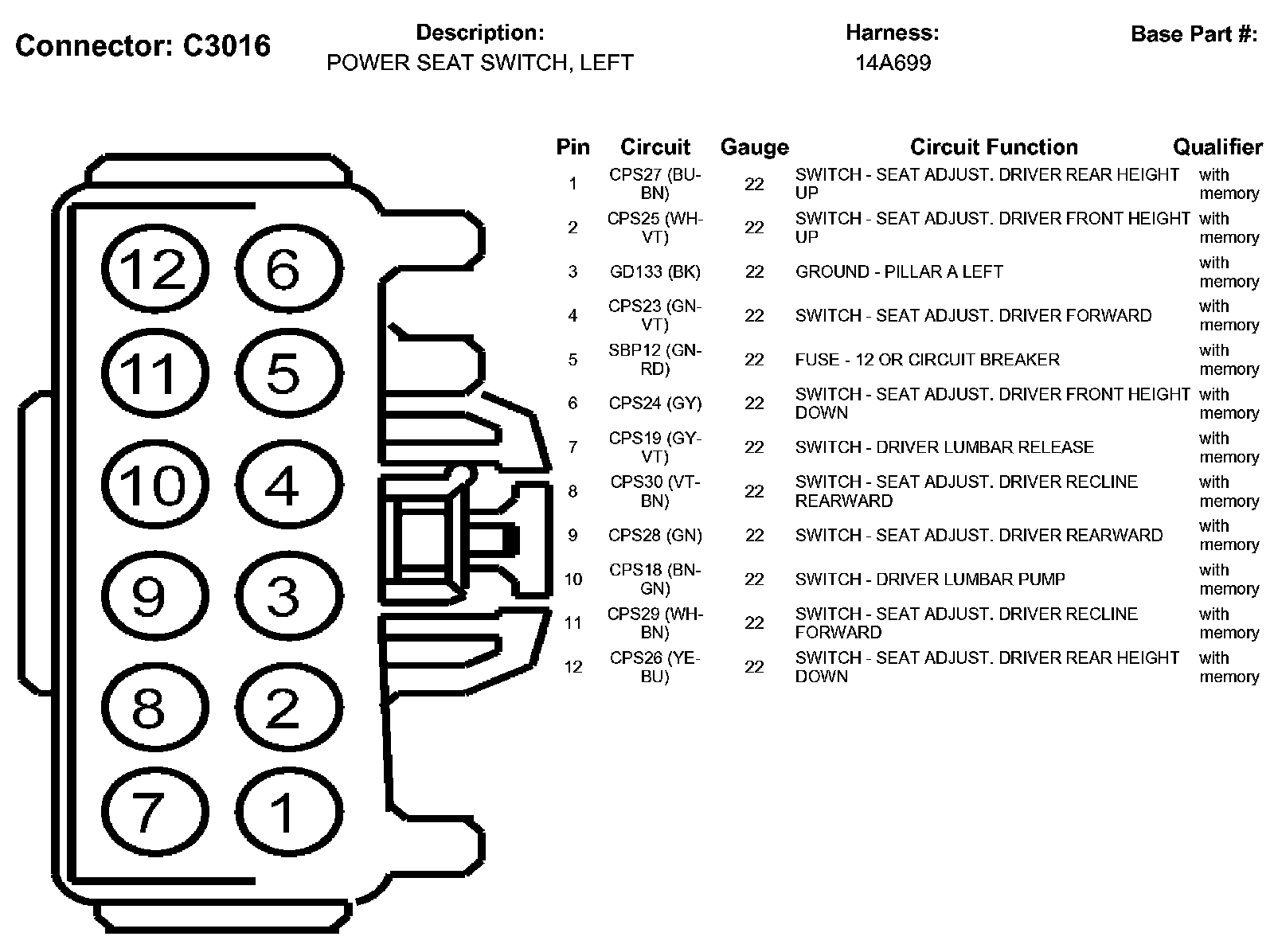 Power Seat Switch, Left