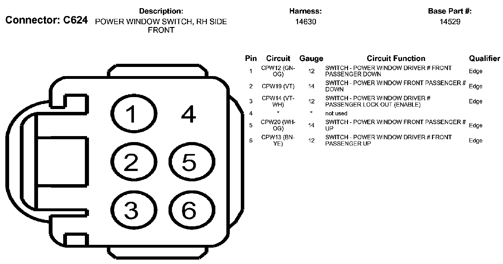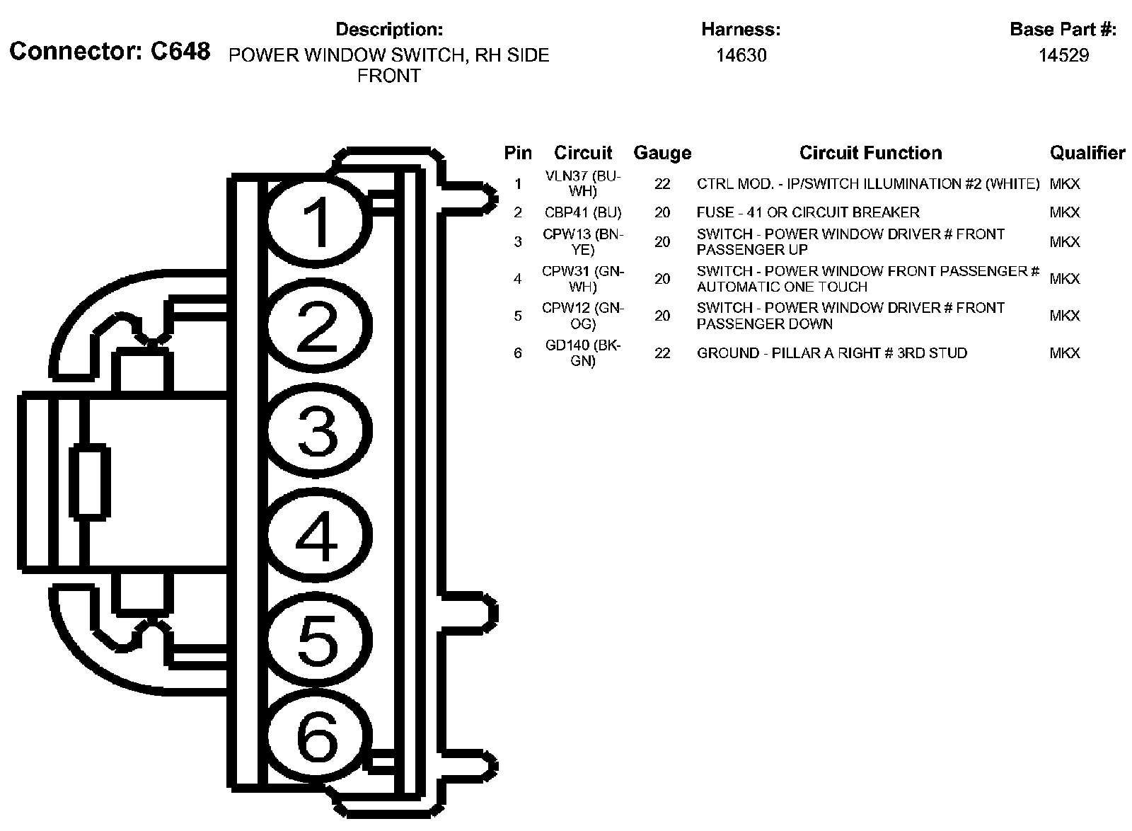 Power Window Switch, RH Side Front