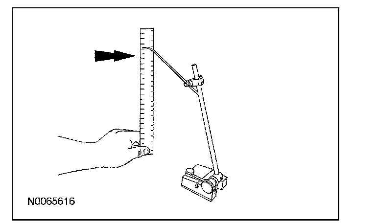 1. Measure the distance between the same flat level surface and the center of the lower arm-to-subframe bolt (measurement A).
