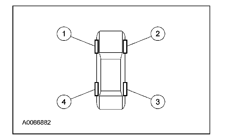 NOTE: The tire pressure sensor training procedure must be done on a single vehicle, in an area without radio frequency noise and at least 1 m (3 ft) away from other vehicles equipped with a tire pressure monitoring system (TPMS).