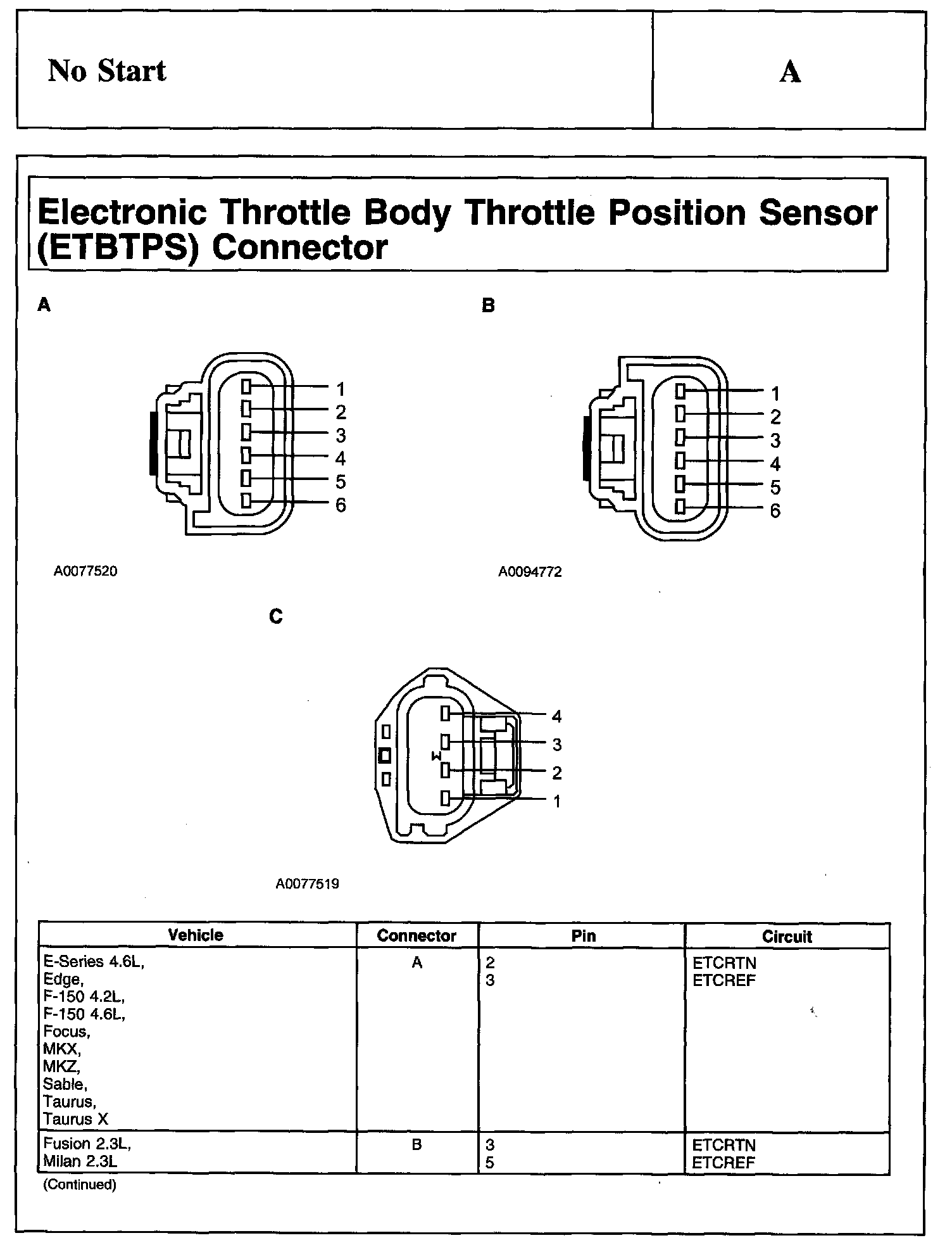 Electronic Throttle Body Throttle Position Sensor (ETBTPS) Connector: