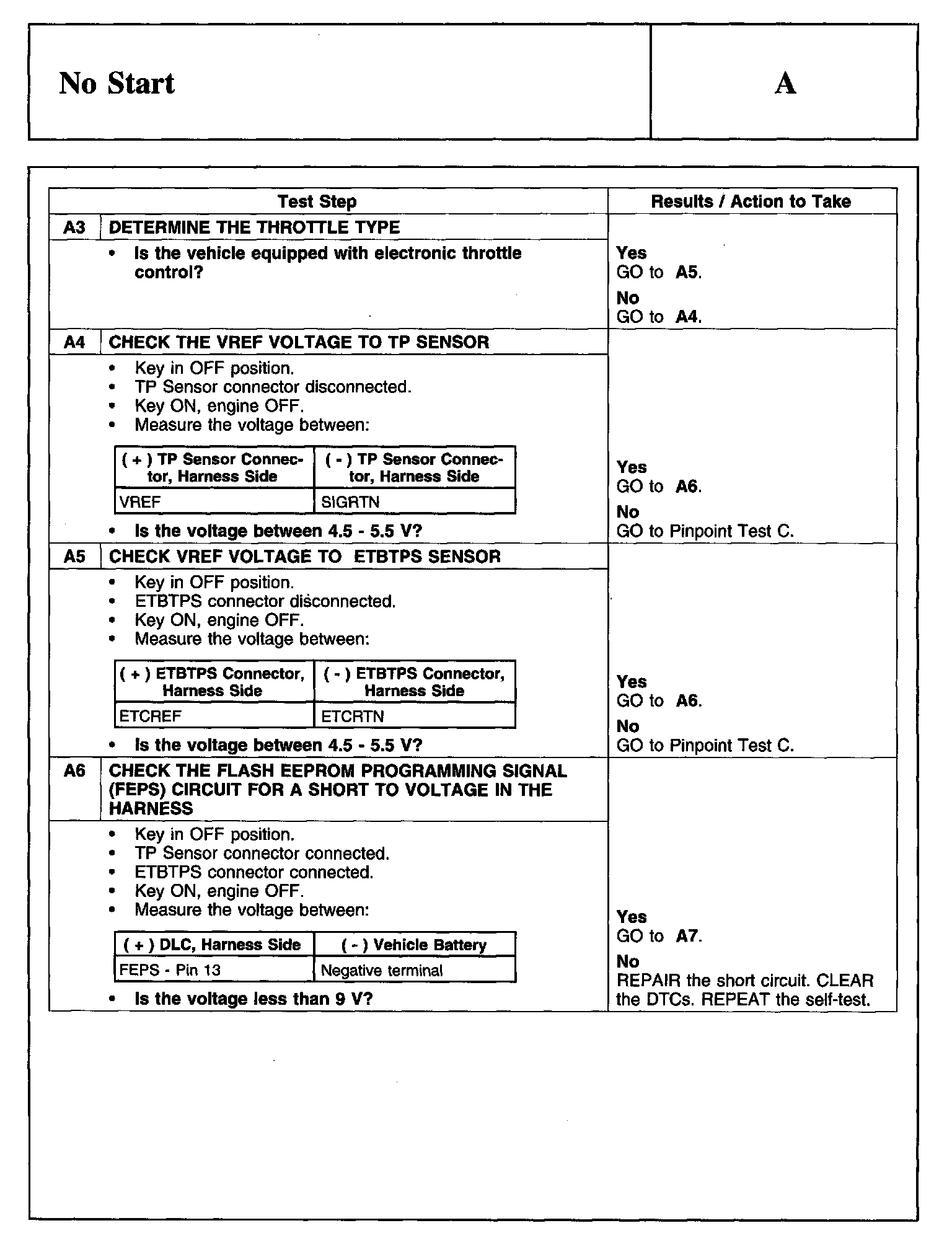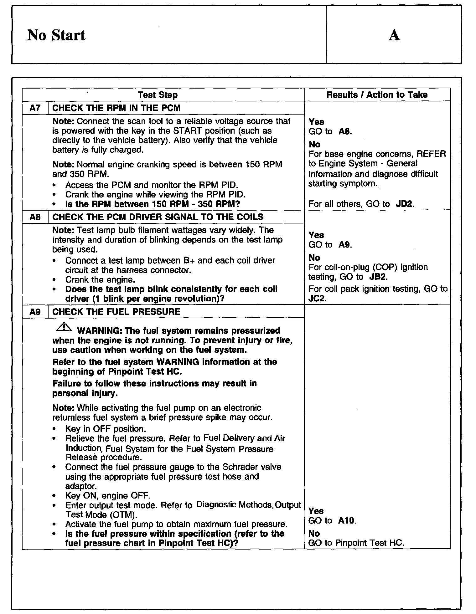 PINPOINT TEST A: NO START
