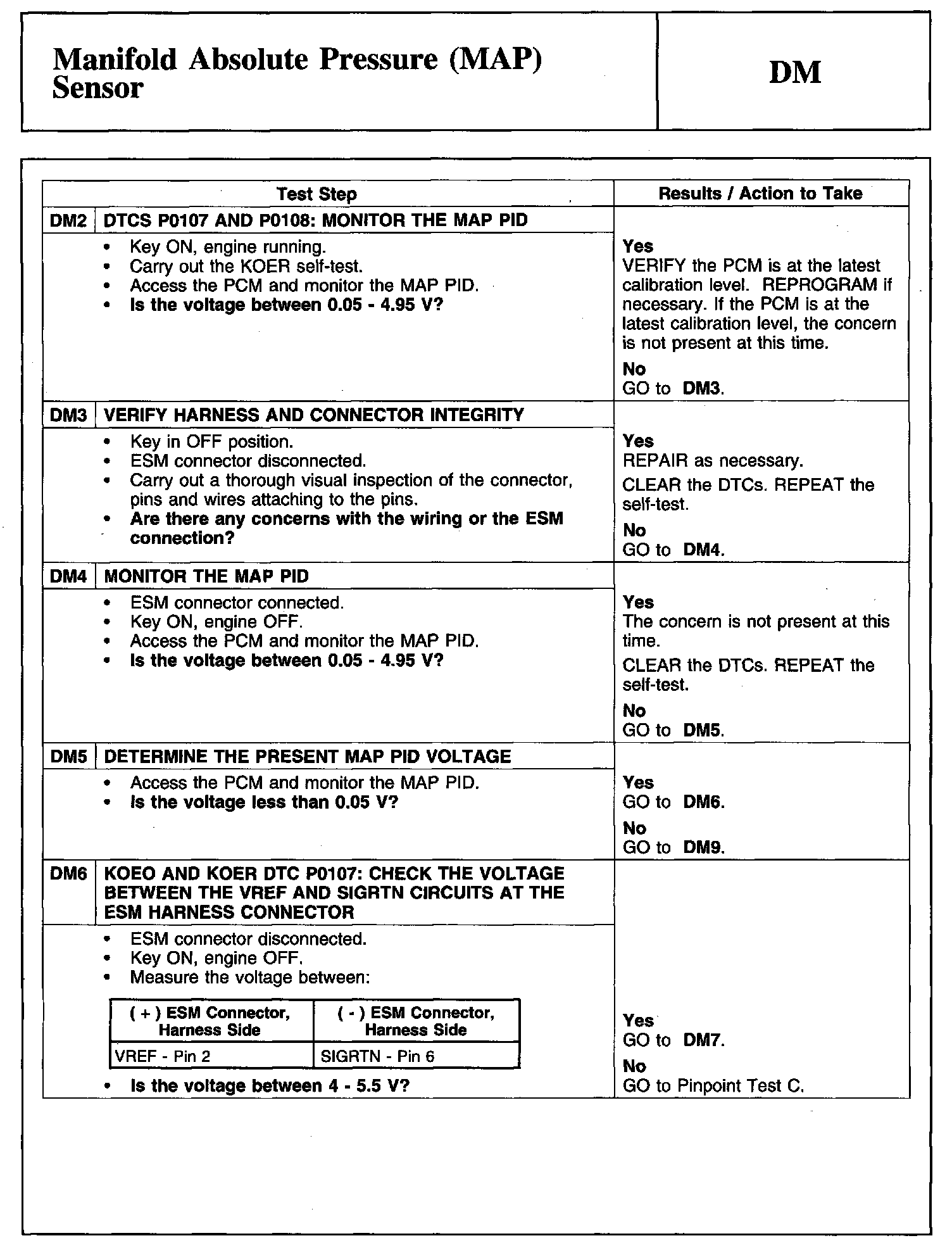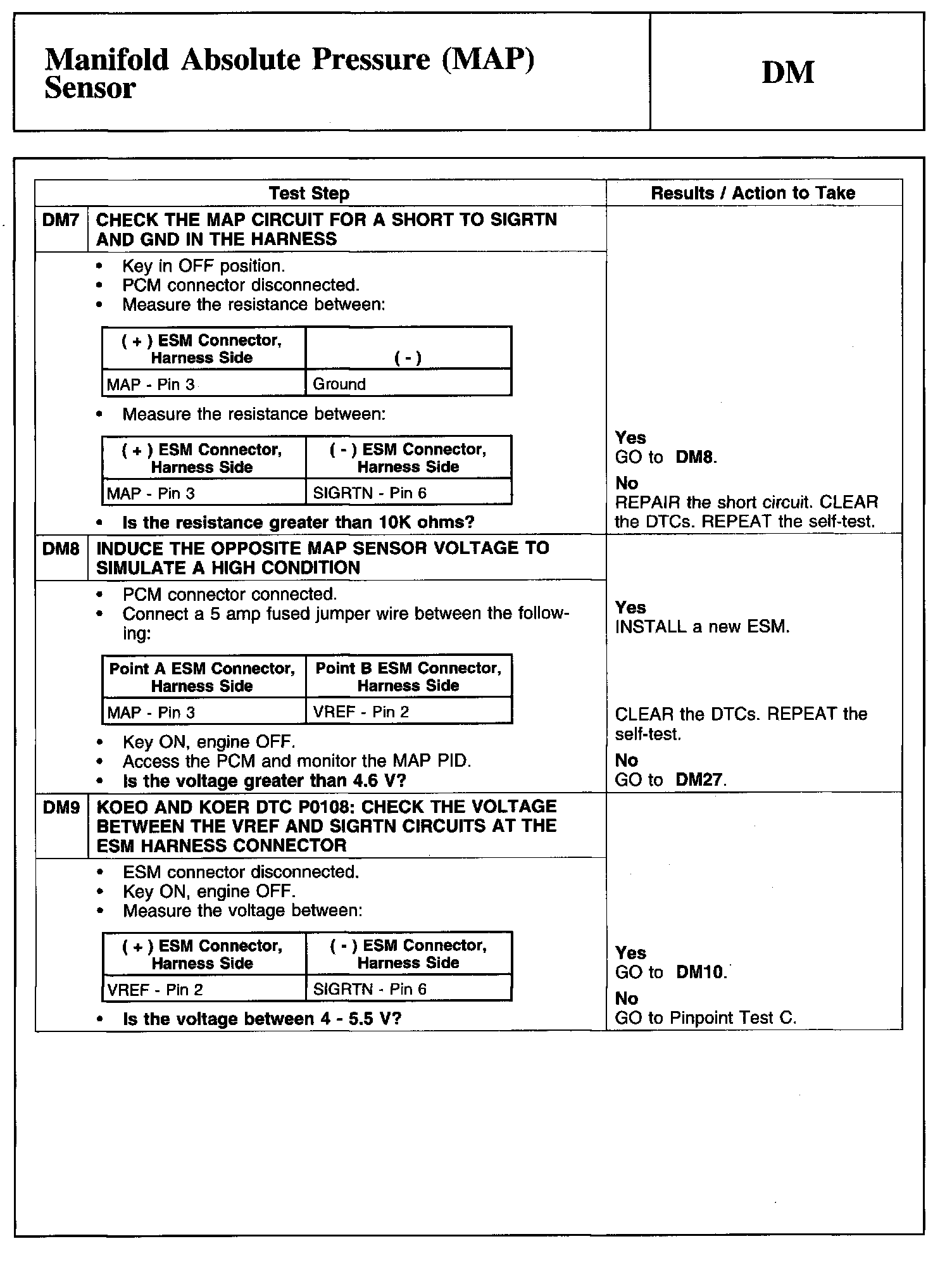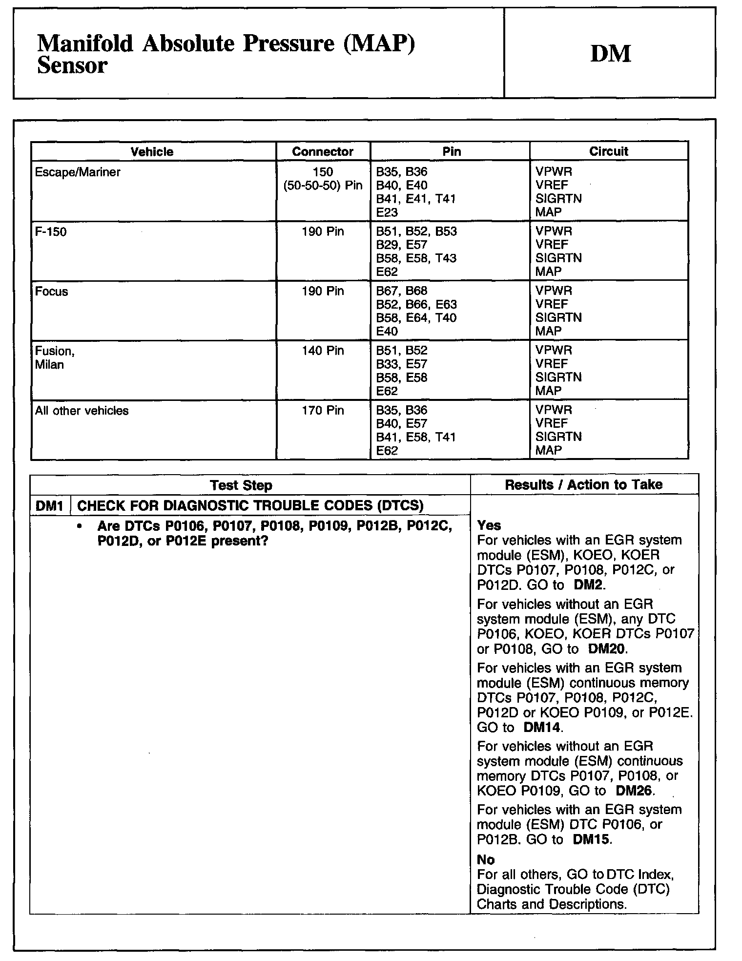 Tests DM: Manifold Absolute Pressure (MAP) Sensor