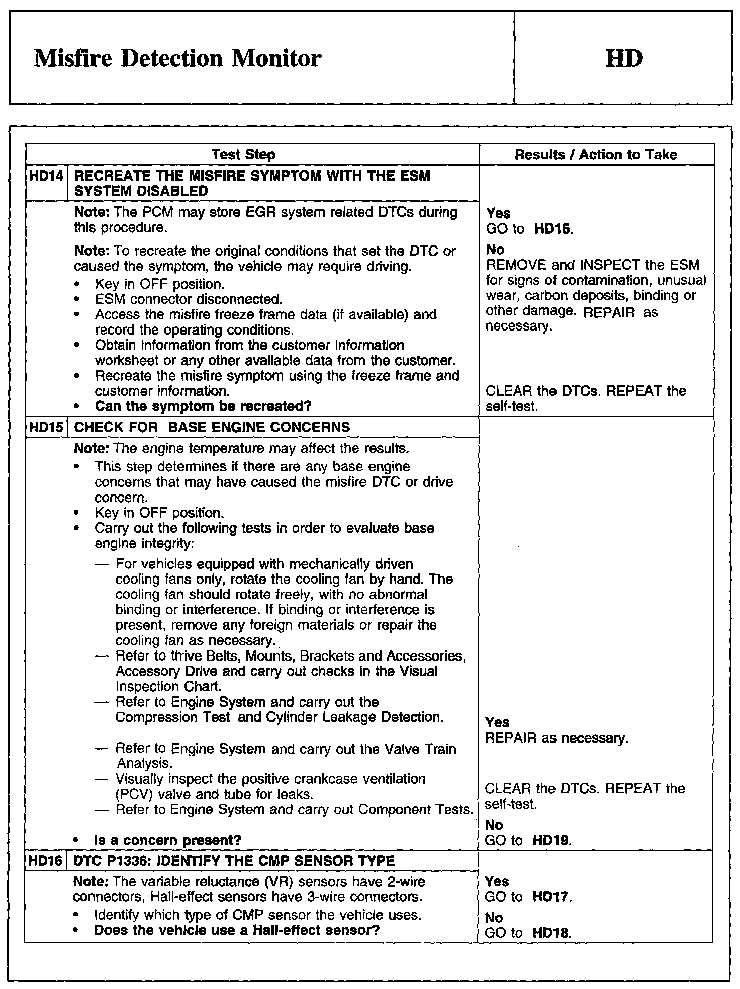 Tests HD: Misfire Detection Monitor
