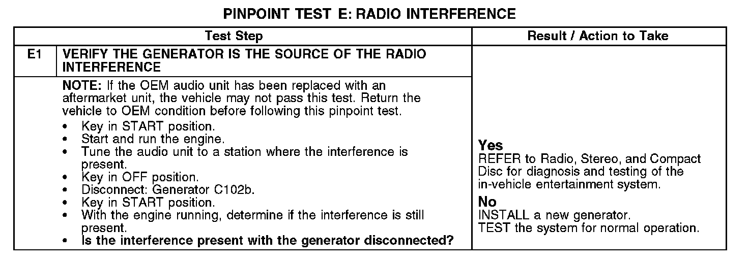 PINPOINT TEST E: RADIO INTERFERENCENormal Operation