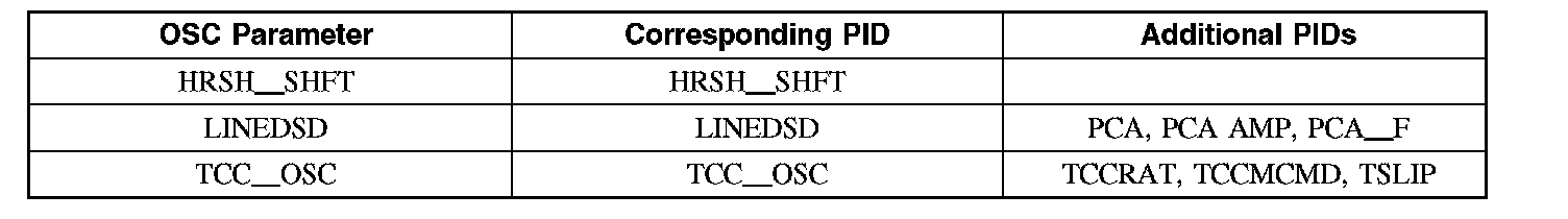 To confirm that the OSC value was sent by the scan tool and the PCM has accepted the OSC command, a corresponding PID for each OSC parameter must be monitored. After SENDING the OSC value, the corresponding PID value should be the same as the OSC value that was sent. Additional PIDs are listed that may be monitored to help the technician accurately diagnose the transaxle.
