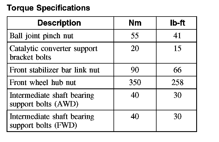Torque Specifications