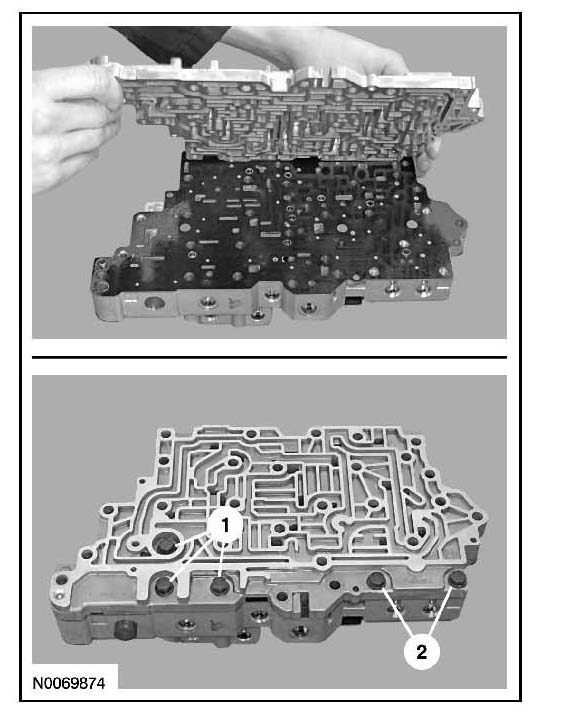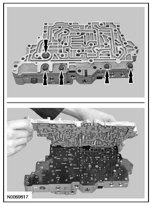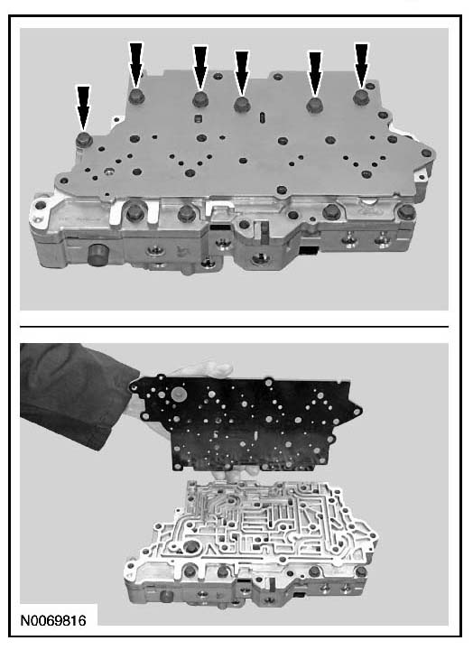 6. Remove and discard the lower valve body separator plate and gasket.