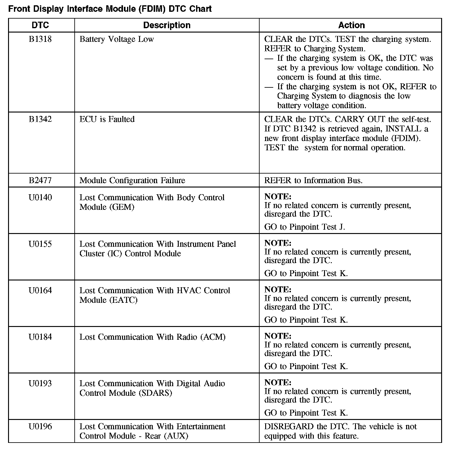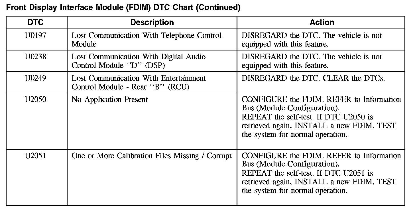 Front Display Interface Module (FDIM) DTC Chart