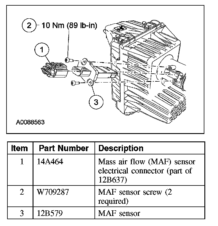 1. Disconnect the mass air flow (MAF) sensor electrical connector.