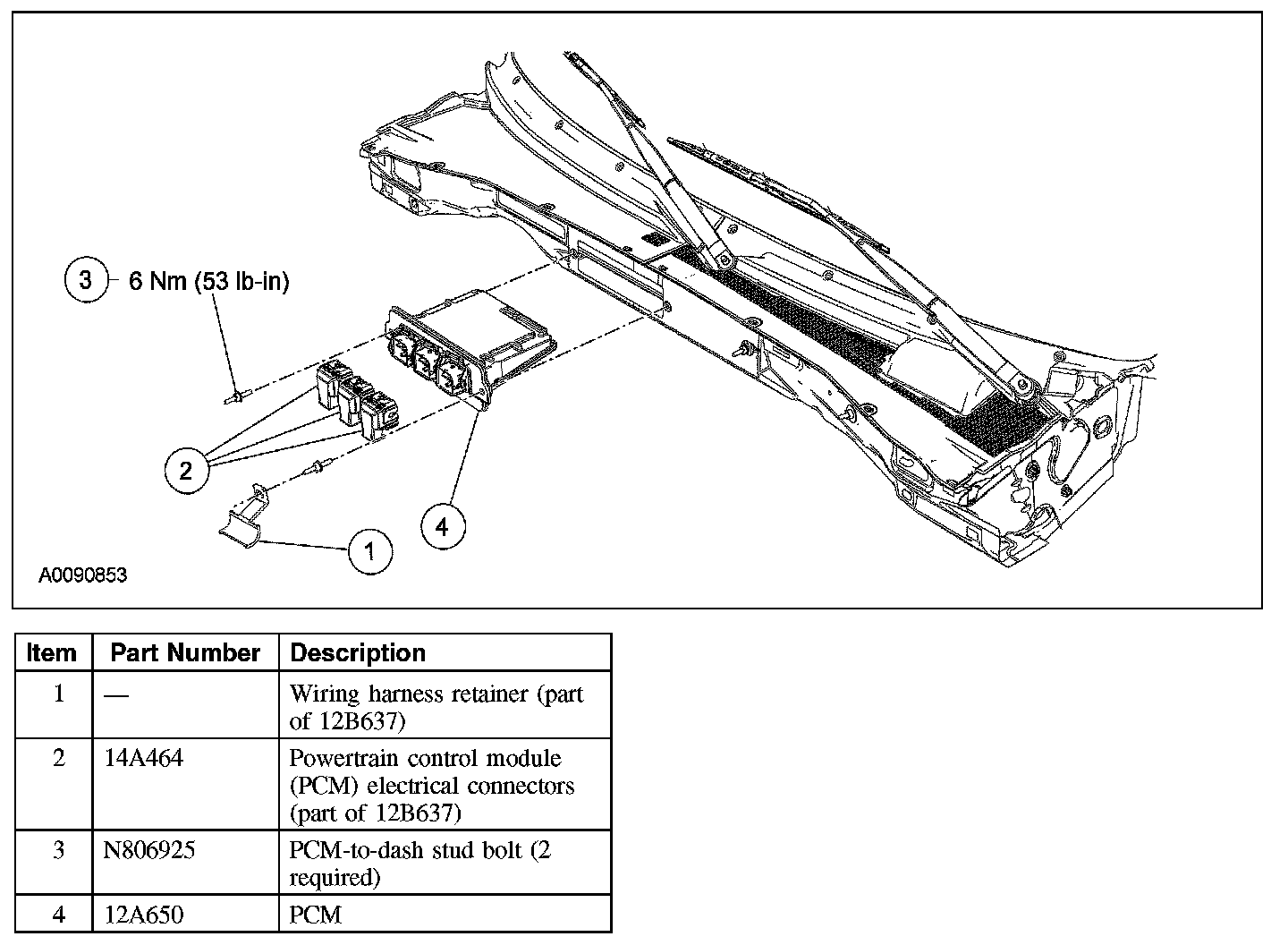 4. Position the wiring harness and install the PCM stud bolt nut.